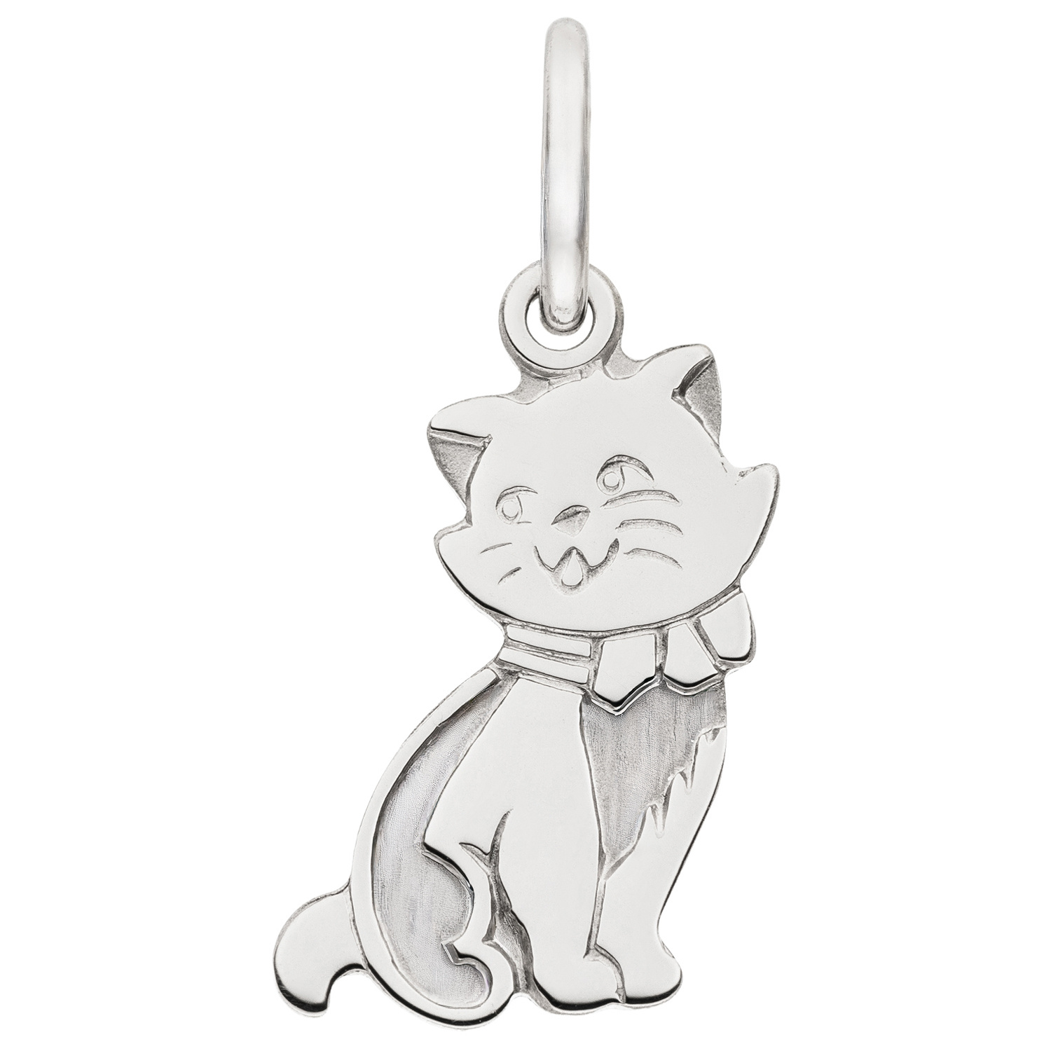 Anhänger "Katze" aus 925 Sterlingsilber, rhodiniert und teilmattiert, Höhe ca. 12,8 mm, Breite ca. 6,7 mm, Tiefe ca. 0,5 mm, Innenmaße der Öse ca. 3,2 mm x 2,1 mm, Gewicht ca. 0,4 g * Der Artikel ist anlaufgeschützt (rhodiniert) * Bitte beachten Sie die Maße! Auf dem Foto kann der Artikel größer wirken *