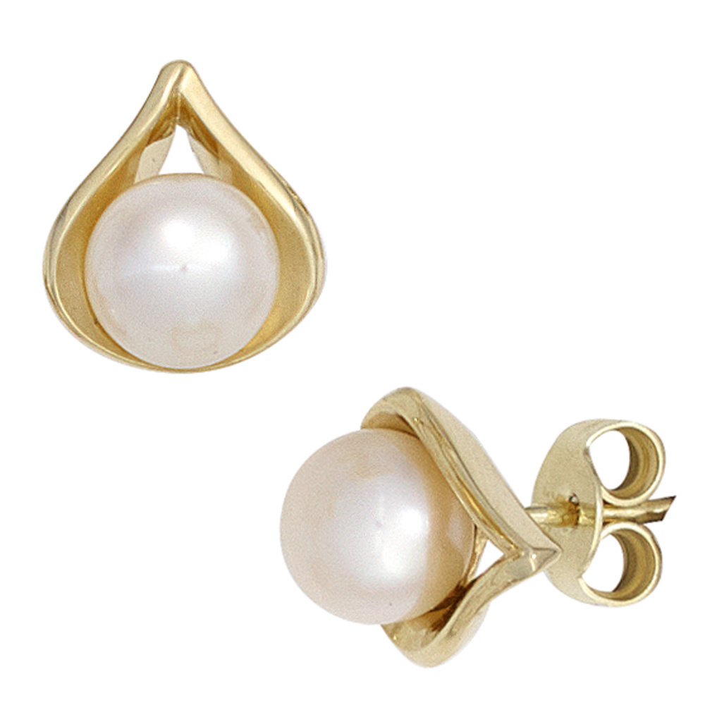 Ohrstecker 585 Gold Gelbgold 2 Süßwasser Perlen Ohrringe Perlenohrstecker