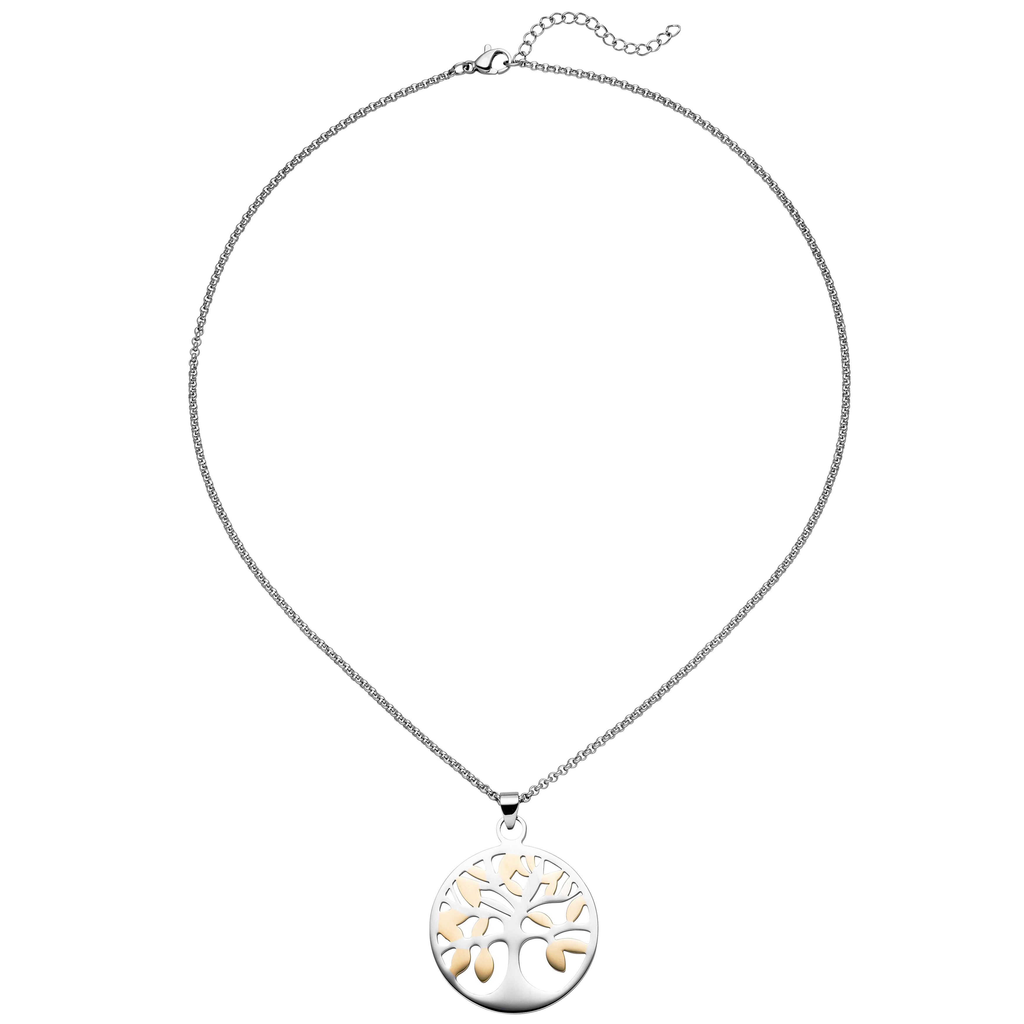 Collier Kette mit Anhänger Lebensbaum Edelstahl bicolor 46 cm verkürzbar