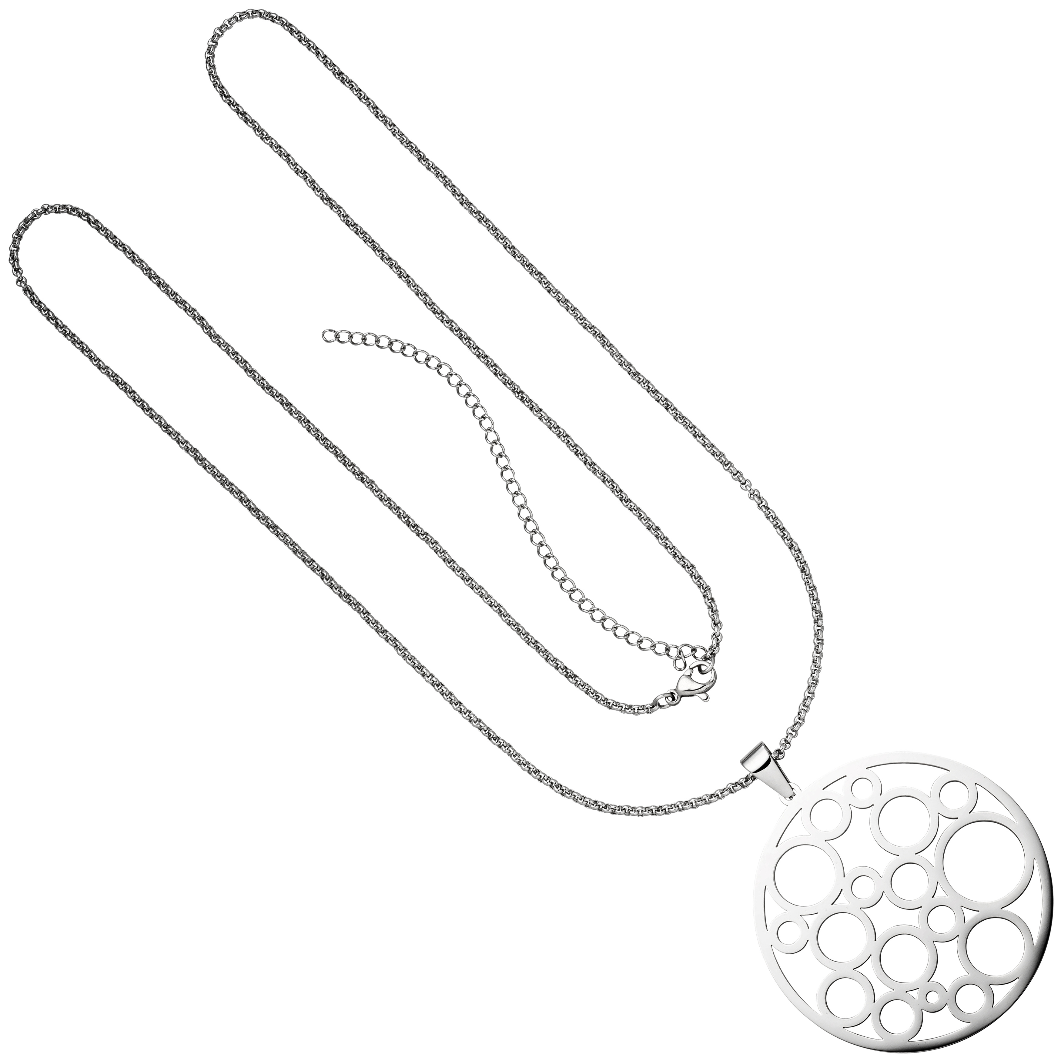 Collier / Erbskette mit Anhänger "Kreise" aus Edelstahl, mit Karabinerverschluss, Länge ca. 80 cm, auf 70 cm verkürzbar, Durchmesser ca. 49,9 mm, Kettenstärke ca. 2 mm x 2 mm, Tiefe ca. 1,4 mm, Gewicht ca. 17,5 g * Bitte beachten Sie die Maße! Auf dem Foto kann der Artikel größer wirken *