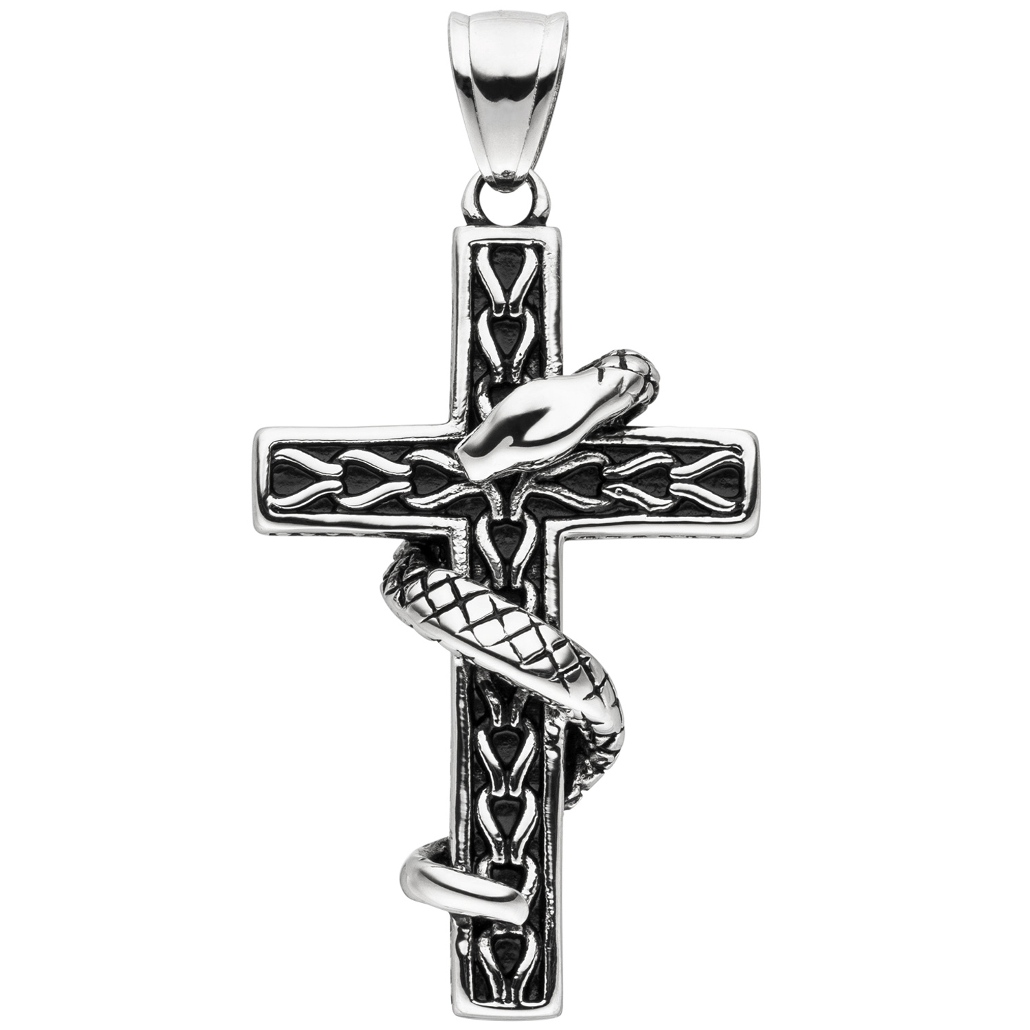 Anhänger Kreuz mit Schlange Edelstahl geschwärzt