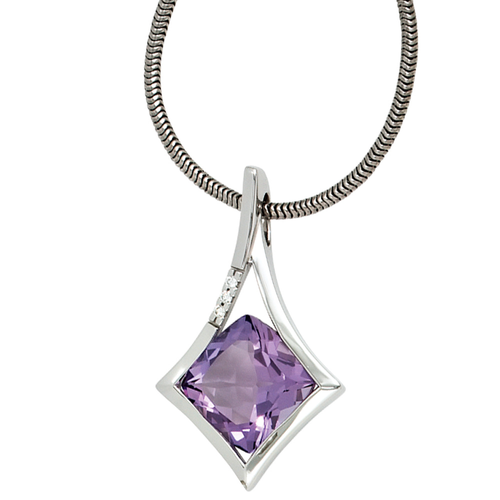 Anhänger 585 Gold Weißgold 1 Amethyst lila violett 3 Diamanten Brillanten