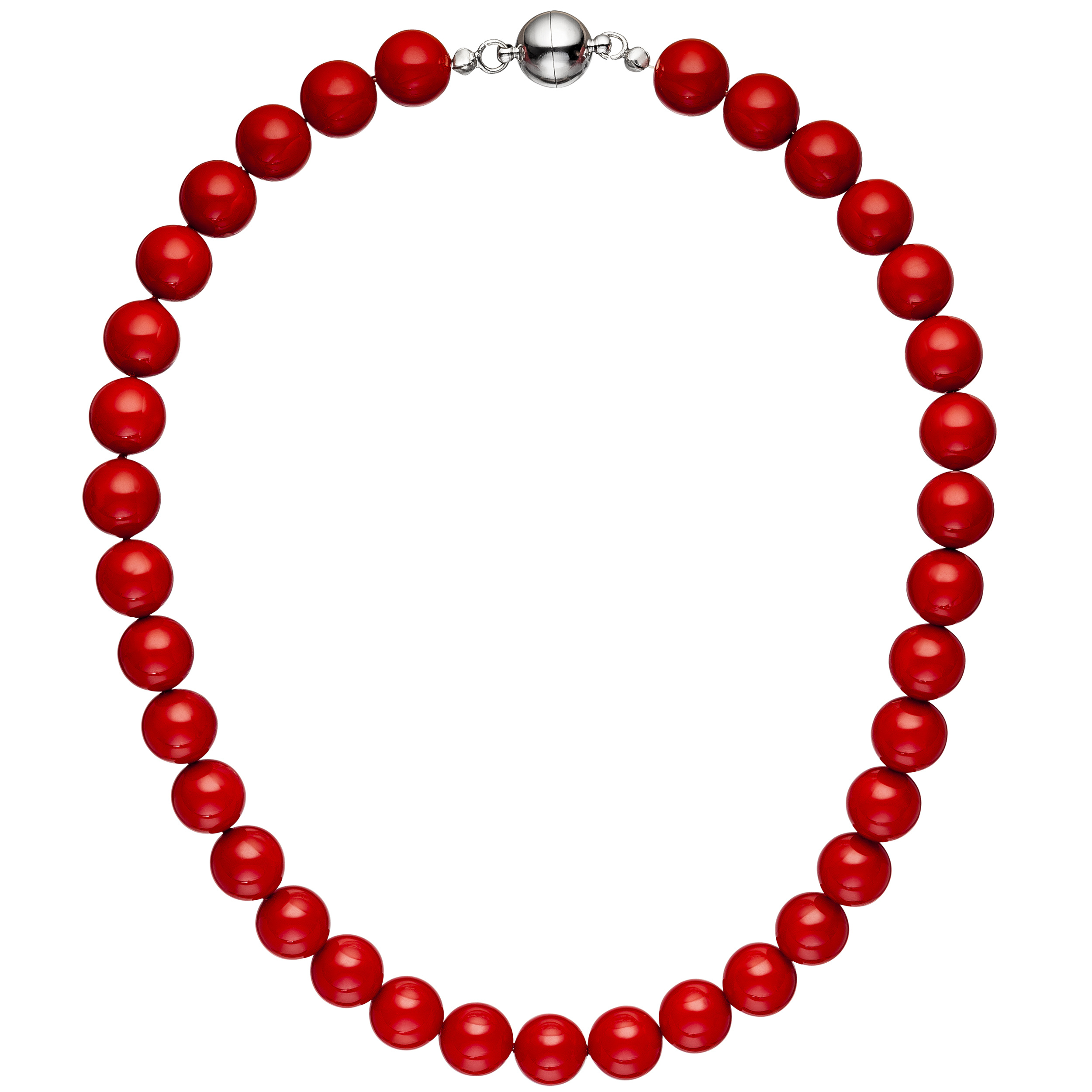 Kette mit roten farbveredelten Muschelkernperlen und Magnet-Schließe aus versilbertem Messing, Durchmesser der Perlen ca. 12 mm, Länge ca. 45 cm, Gewicht ca. 94,1 g * Bitte beachten Sie die Maße! Auf dem Foto kann der Artikel größer wirken *