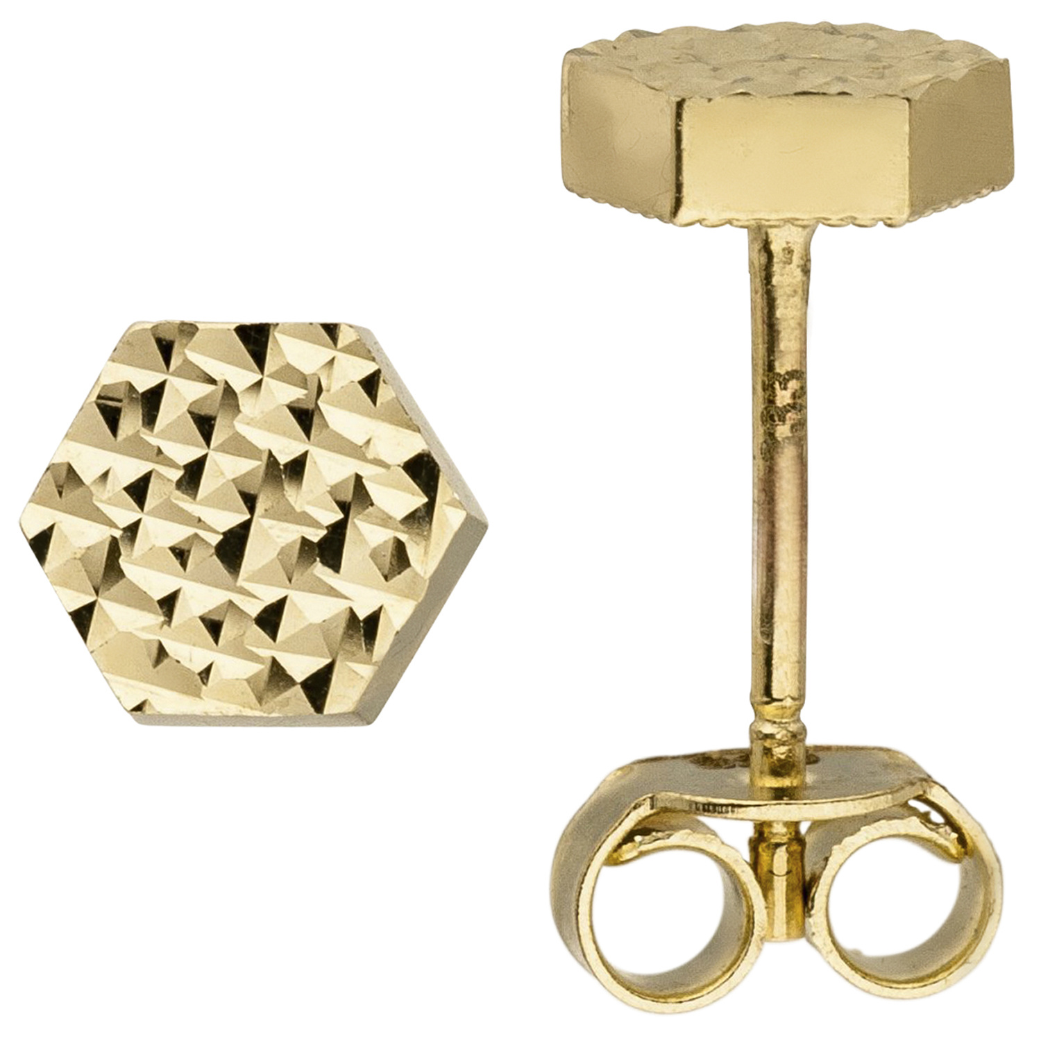Ohrstecker sechseckig 333 Gold Gelbgold mit Struktur Ohrringe Goldohrringe
