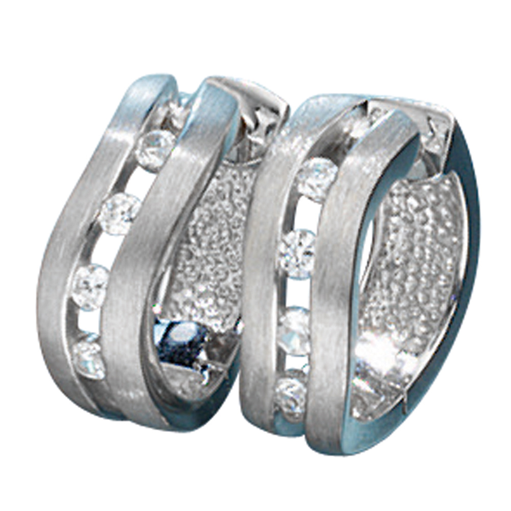 1 Paar Creolen mit Klappmechanik aus 925 Sterlingsilber, rhodiniert und mattiert, mit 8 Zirkonia, Außendurchmesser ca. 16,8 mm, Breite ca. 5,8 mm, Gewicht ca. 4,5 g * Der Artikel ist anlaufgeschützt (rhodiniert) * Bitte beachten Sie die Maße! Auf dem Foto kann der Artikel größer wirken *