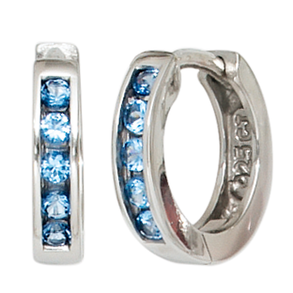 Creolen rund 925 Silber 10 Zirkonia blau Ohrringe Silberohrringe Silbercreolen