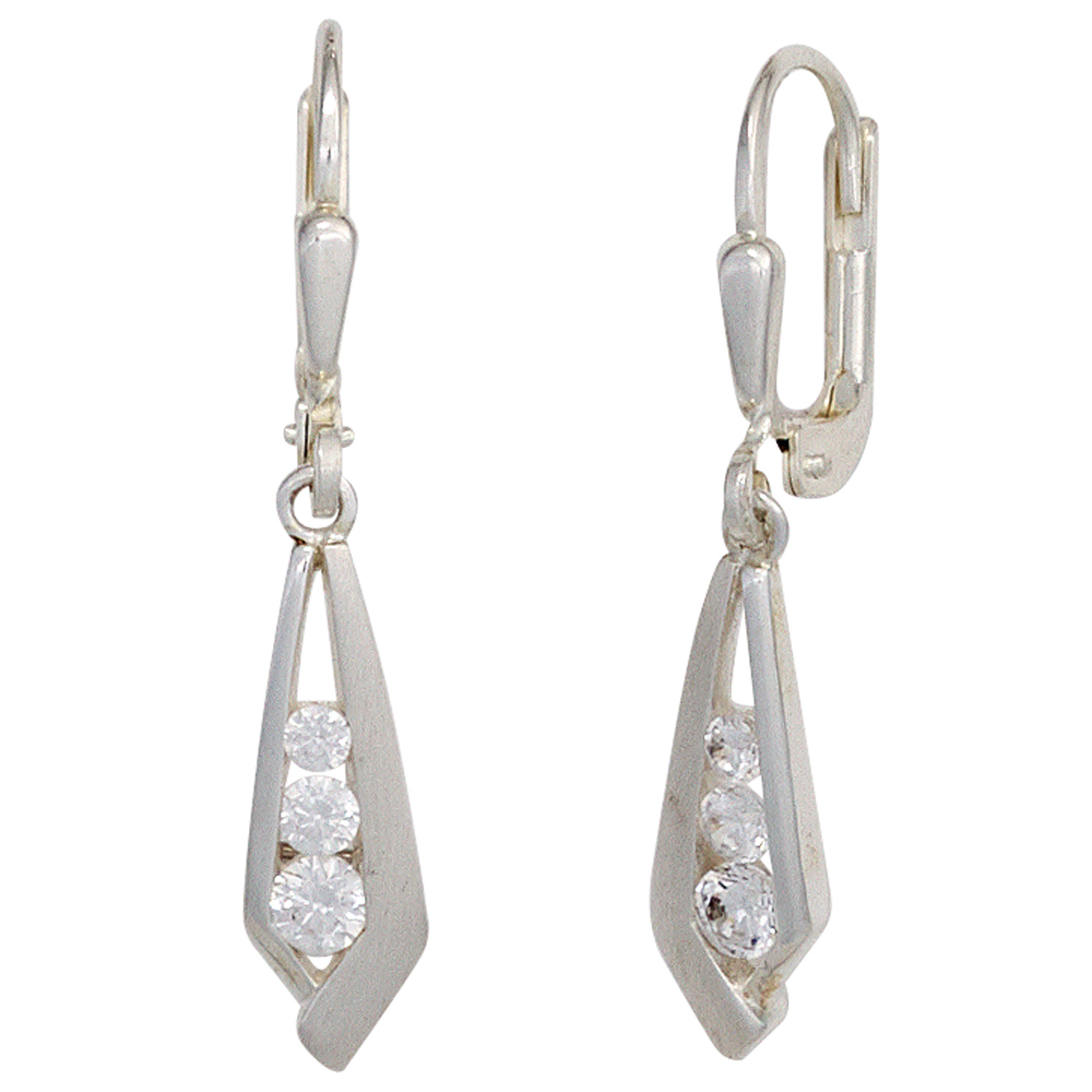 1 Paar Boutons aus 925 Sterlingsilber, rhodiniert und teilmattiert, mit 6 Zirkonia, Höhe ca. 30,6 mm, Breite ca. 5,4 mm, Gewicht ca. 2,1 g * Der Artikel ist anlaufgeschützt (rhodiniert) * Bitte beachten Sie die Maße! Auf dem Foto kann der Artikel größer wirken *