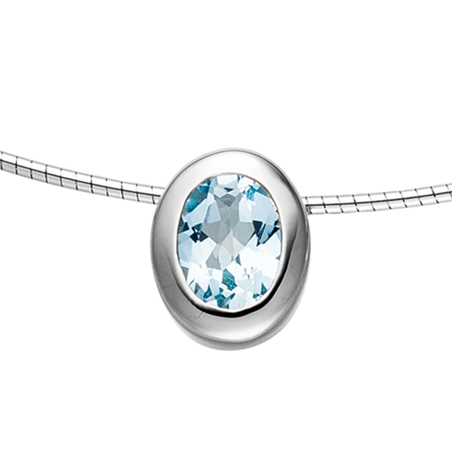 Anhänger oval 925 Sterling Silber rhodiniert 1 Blautopas blau hellblau