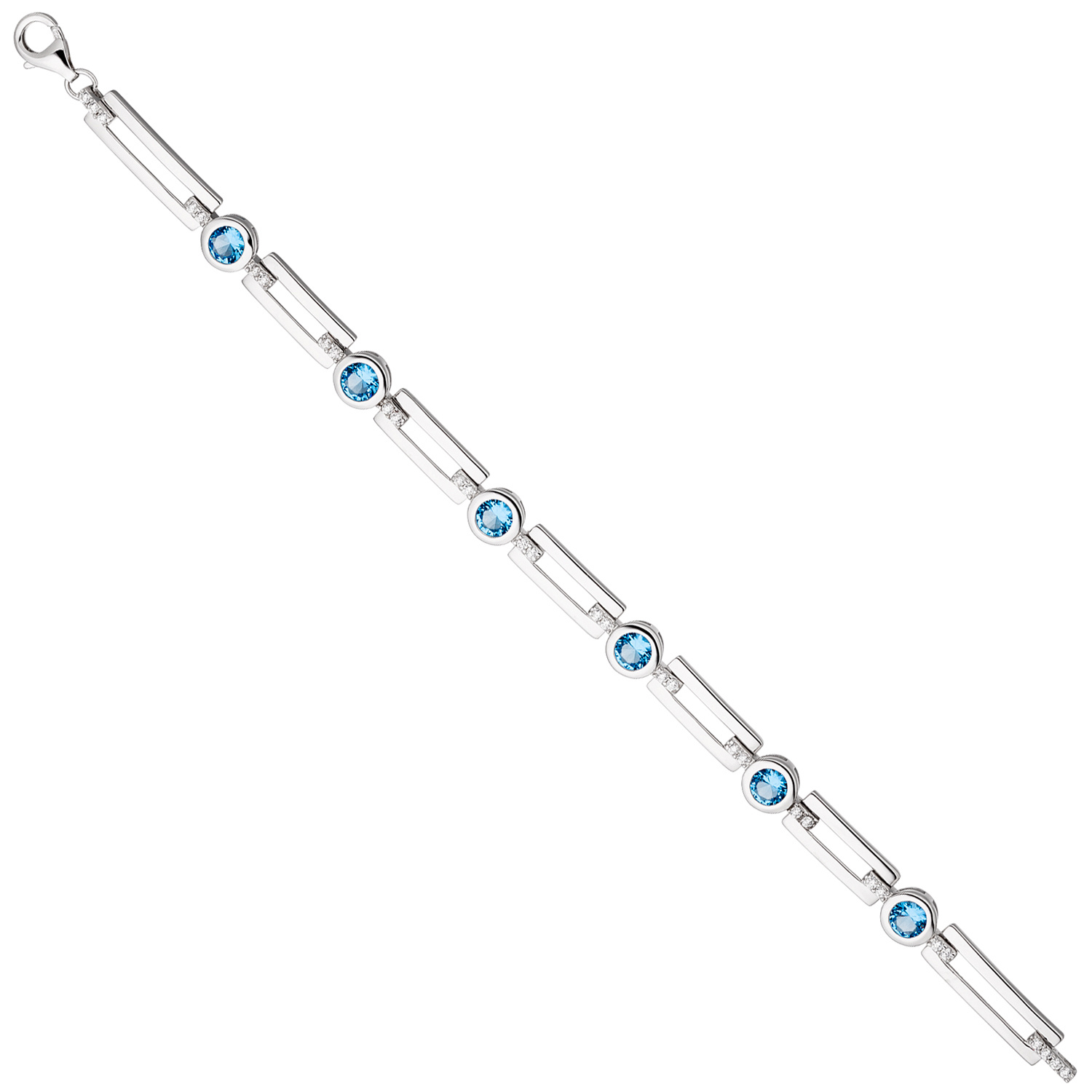 Armband 925 Sterling Silber mit Zirkonia hellblau und weiß 19 cm Silberarmband