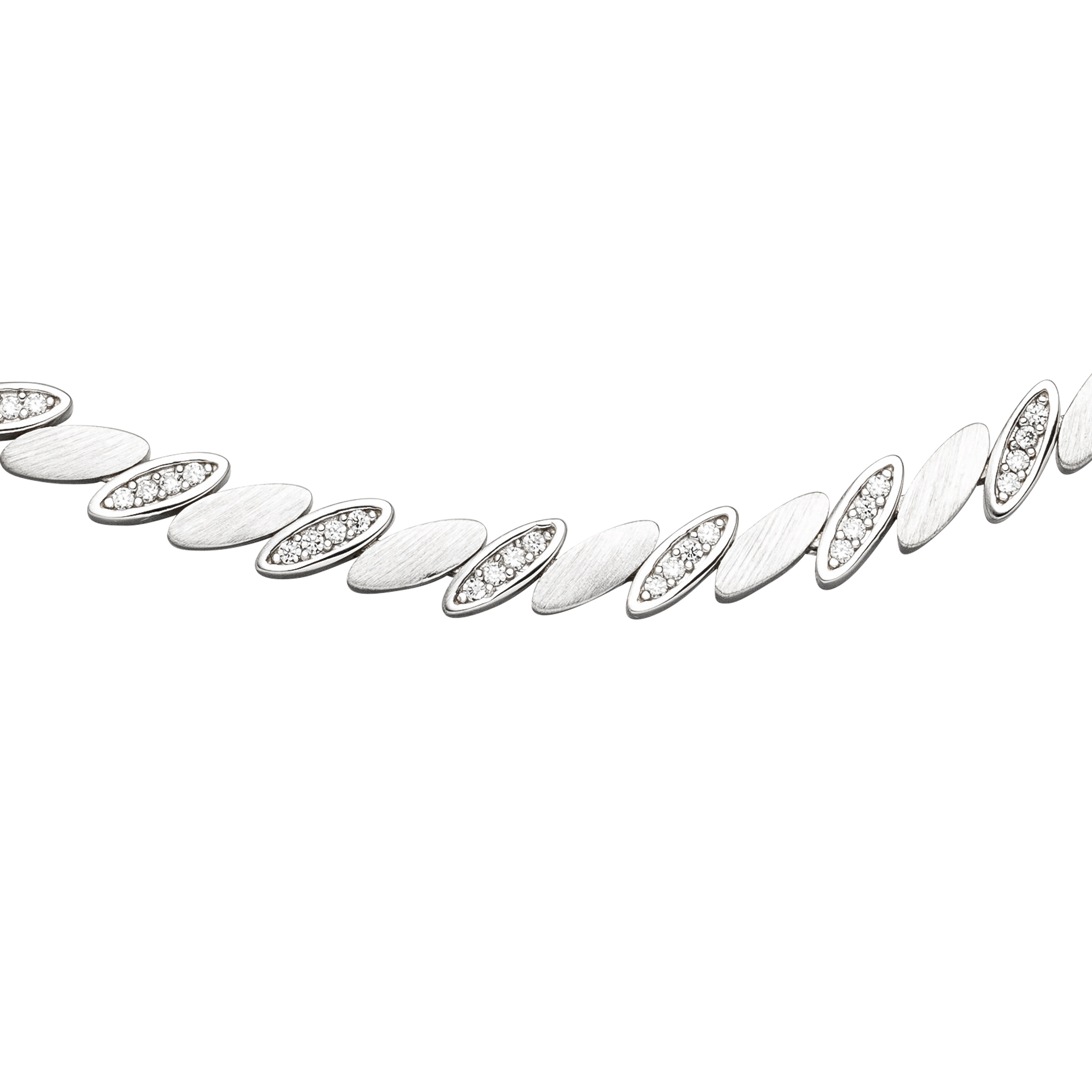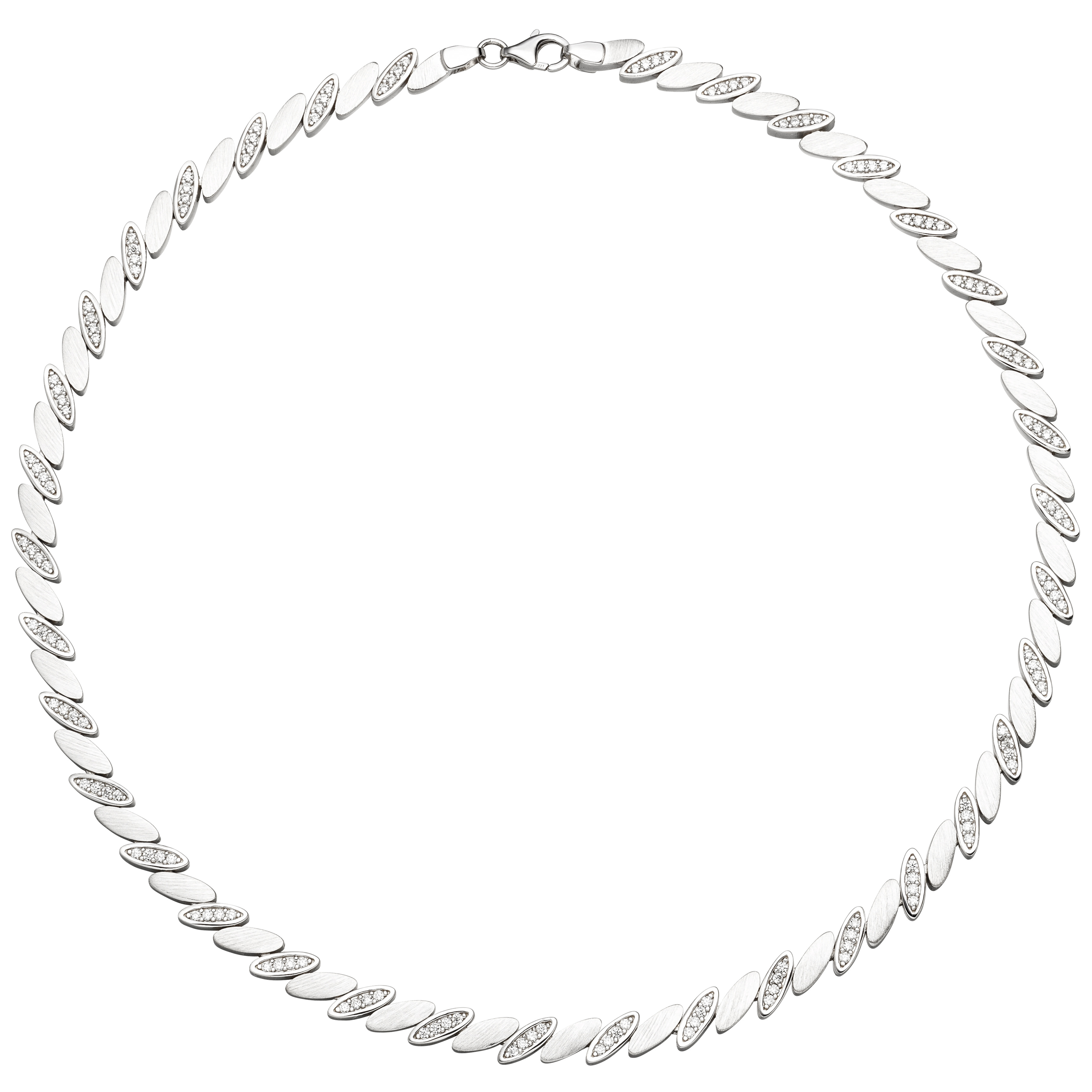 Collier Halskette 925 Silber matt 144 Zirkonia 45 cm Kette Silberkette