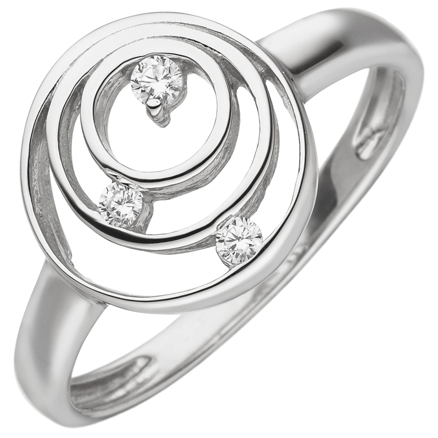 Damenring aus 925 Sterlingsilber, rhodiniert, mit 3 Zirkonia, Breite ca. 11,8 mm, Tiefe ca. 2,9 mm, Gewicht ca. 2,0 g * Der Artikel ist anlaufgeschützt (rhodiniert) * Bitte beachten Sie die Maße! Auf dem Foto kann der Artikel größer wirken *