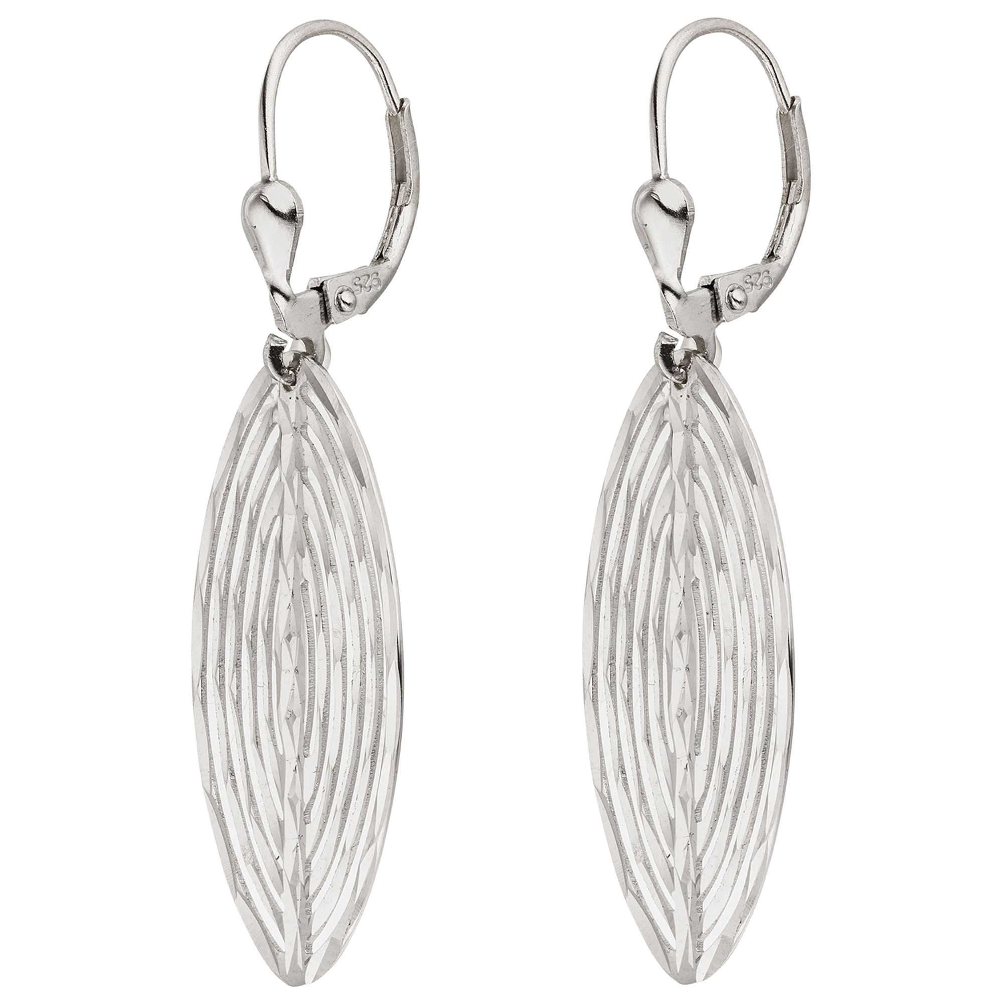 1 Paar diamantierte Boutons aus 925 Sterlingsilber, rhodiniert, Höhe ca. 43,7 mm, Breite ca. 15,6 mm, Gewicht ca. 2,1 g * Der Artikel ist anlaufgeschützt (rhodiniert) * Bitte beachten Sie die Maße! Auf dem Foto kann der Artikel größer wirken *