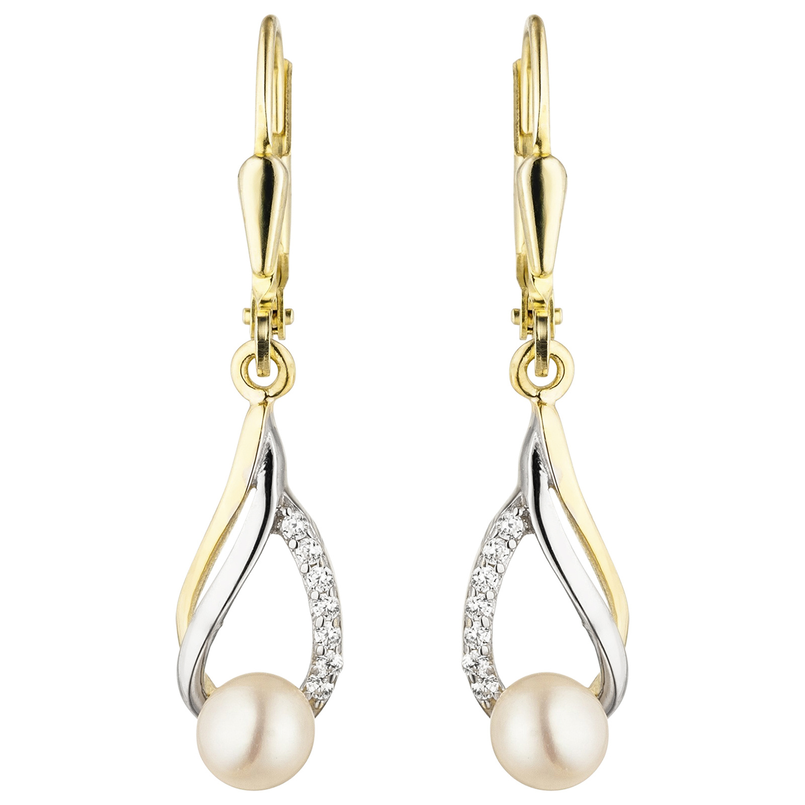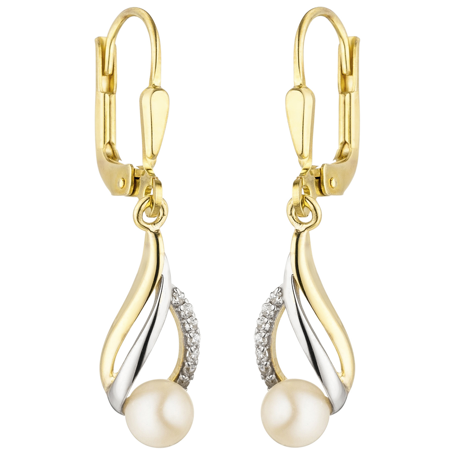 Ohrhänger 333 Gold Gelbgold bicolor 2 Süßwasser Perlen 14 Zirkonia