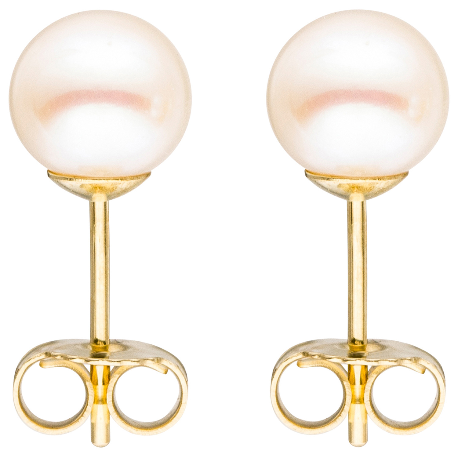 Ohrstecker 585 Gold Gelbgold 2 Süßwasser Perlen 6 mm