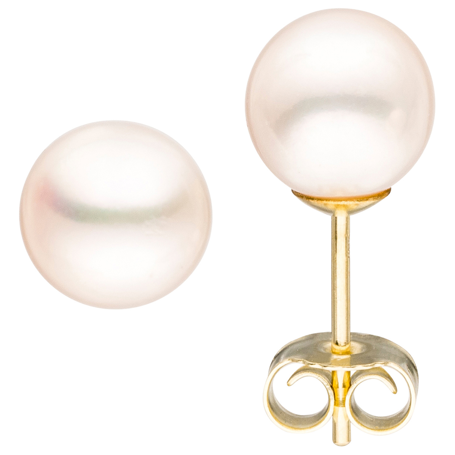 Ohrstecker 585 Gold Gelbgold 2 Süßwasser Perlen 6,5 mm