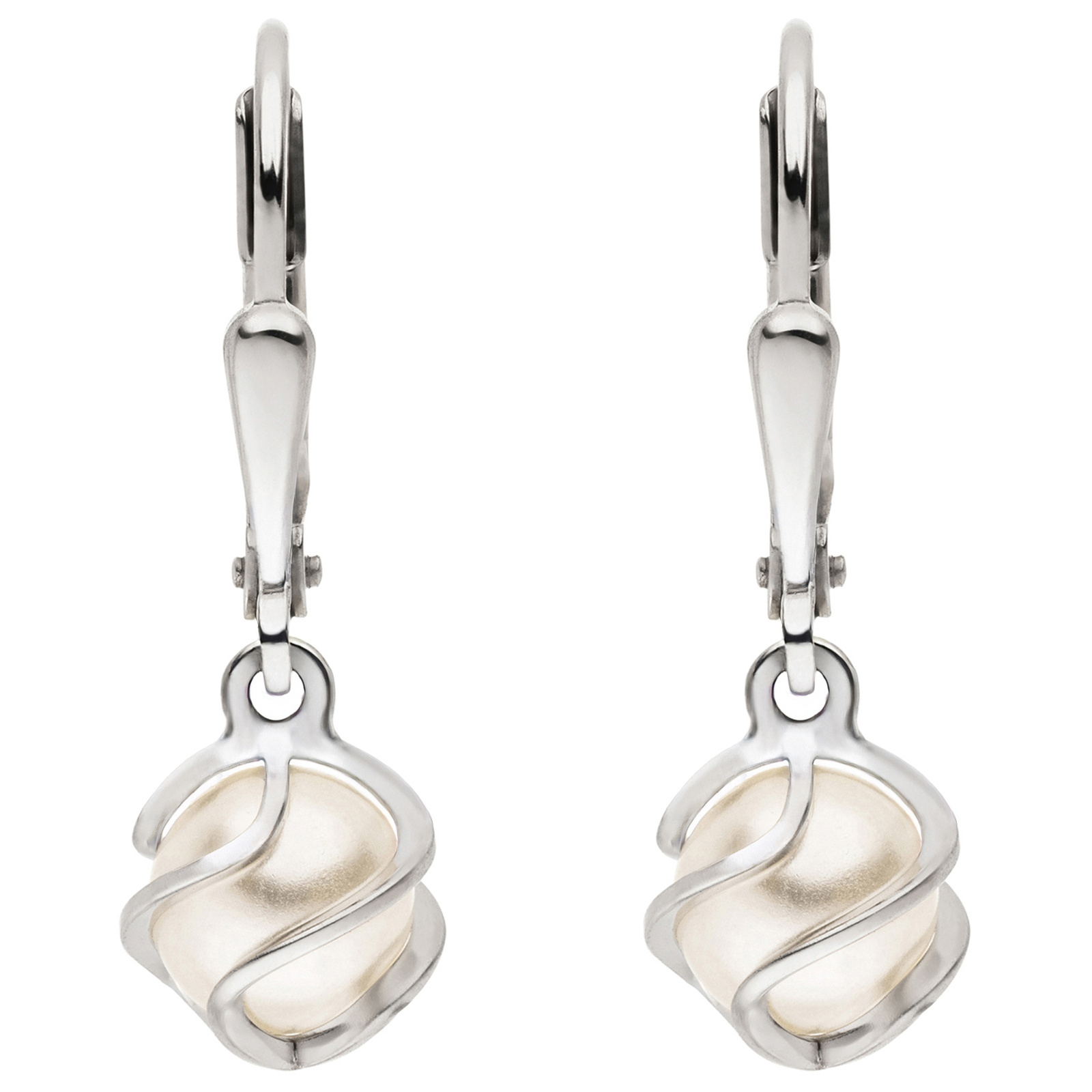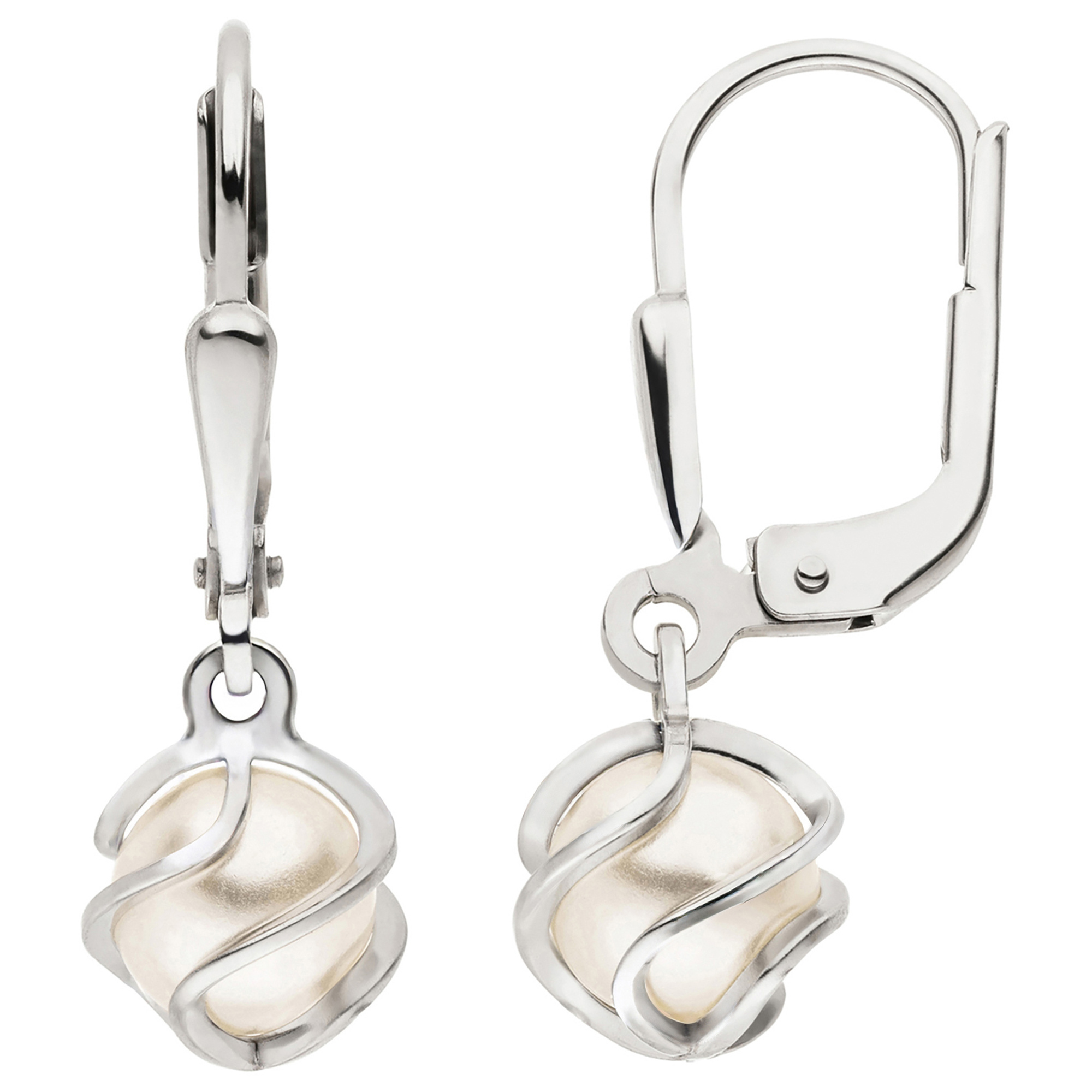 1 Paar Boutons aus 925 Sterlingsilber, rhodiniert, 2 Perlen (synth.) weiß, Höhe ca. 23,2 mm, Breite ca. 7,3 mm, Gewicht ca. 1,4 g * Der Artikel ist anlaufgeschützt (rhodiniert) * Bitte beachten Sie die Maße! Auf dem Foto kann der Artikel größer wirken *
