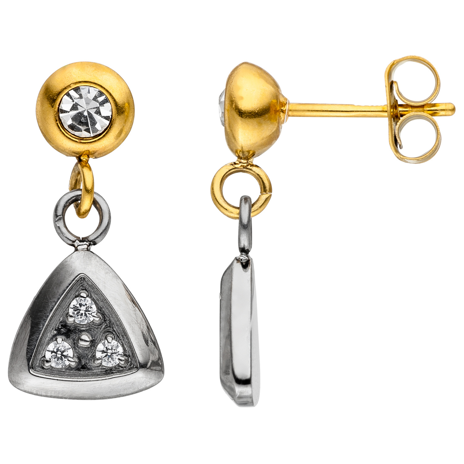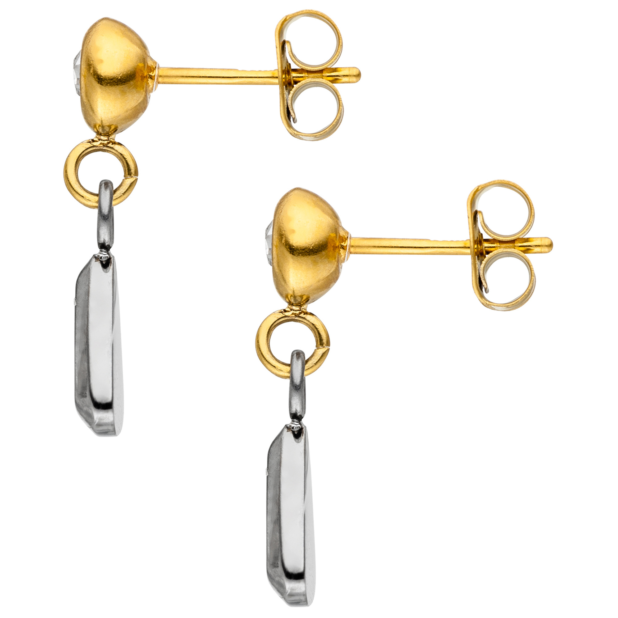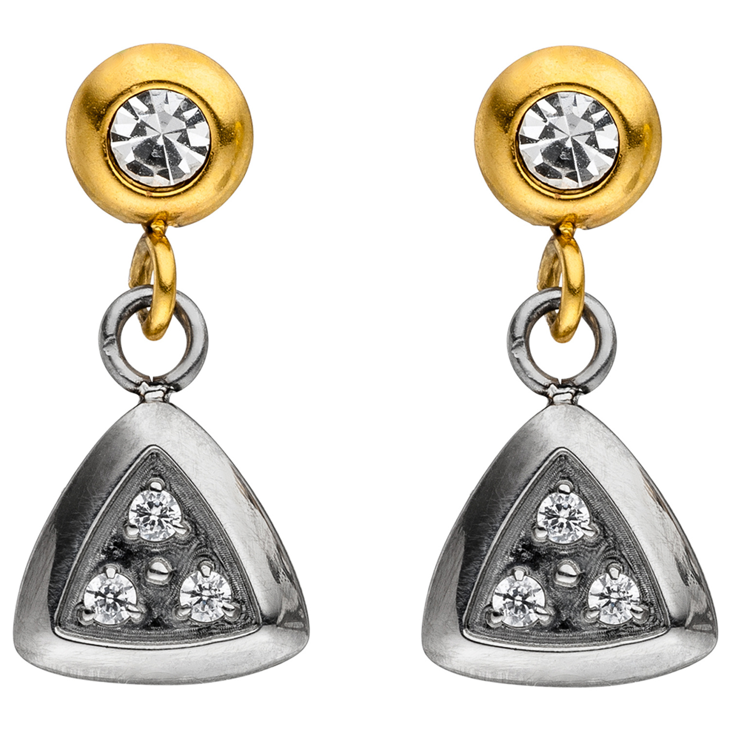 Ohrhänger Edelstahl bicolor beschichtet mit Kristallsteinen und 6 Zirkonia Ohrhänger Edelstahl bicolor beschichtet mit Kristallsteinen und 6 Zirkonia Ohrhänger Edelstahl bicolor beschichtet mit Kristallsteinen und 6 Zirkonia