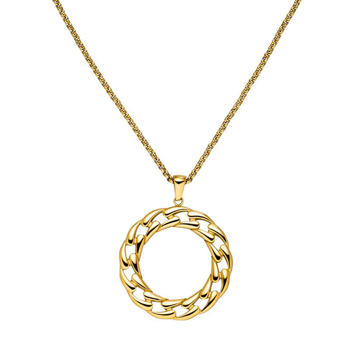 Collier / Erbskette mit Anhänger "Kreis" aus Edelstahl mit gelbgoldfarbener PVD-Beschichtung und Karabinerverschluss, Länge ca. 46 cm, auf 42 cm verkürzbar, Durchmesser ca. 32,8 mm, Kettenstärke ca. 1,7 mm x 1,7 mm, Gewicht ca. 9,7 g * Bitte beachten Sie die Maße! Auf dem Foto kann der Artikel größer wirken *