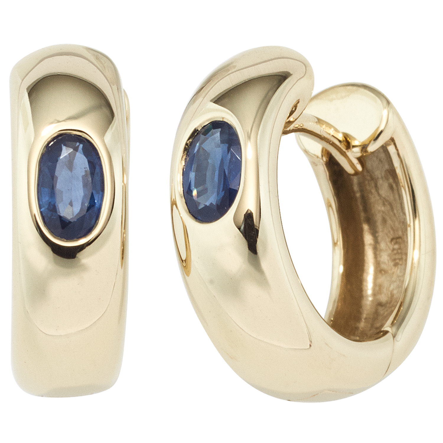 Creolen rund 585 Gold Gelbgold 2 Saphire blau Ohrringe Goldohrringe Goldcreolen