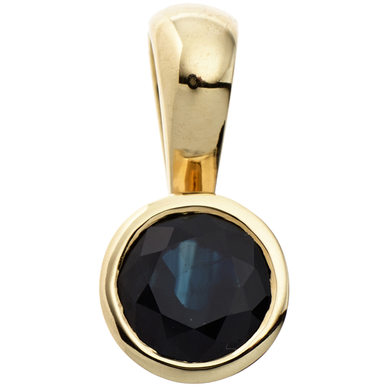 Anhänger rund 333 Gold Gelbgold 1 blauer Safir Goldanhänger