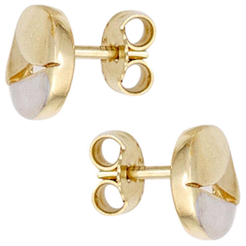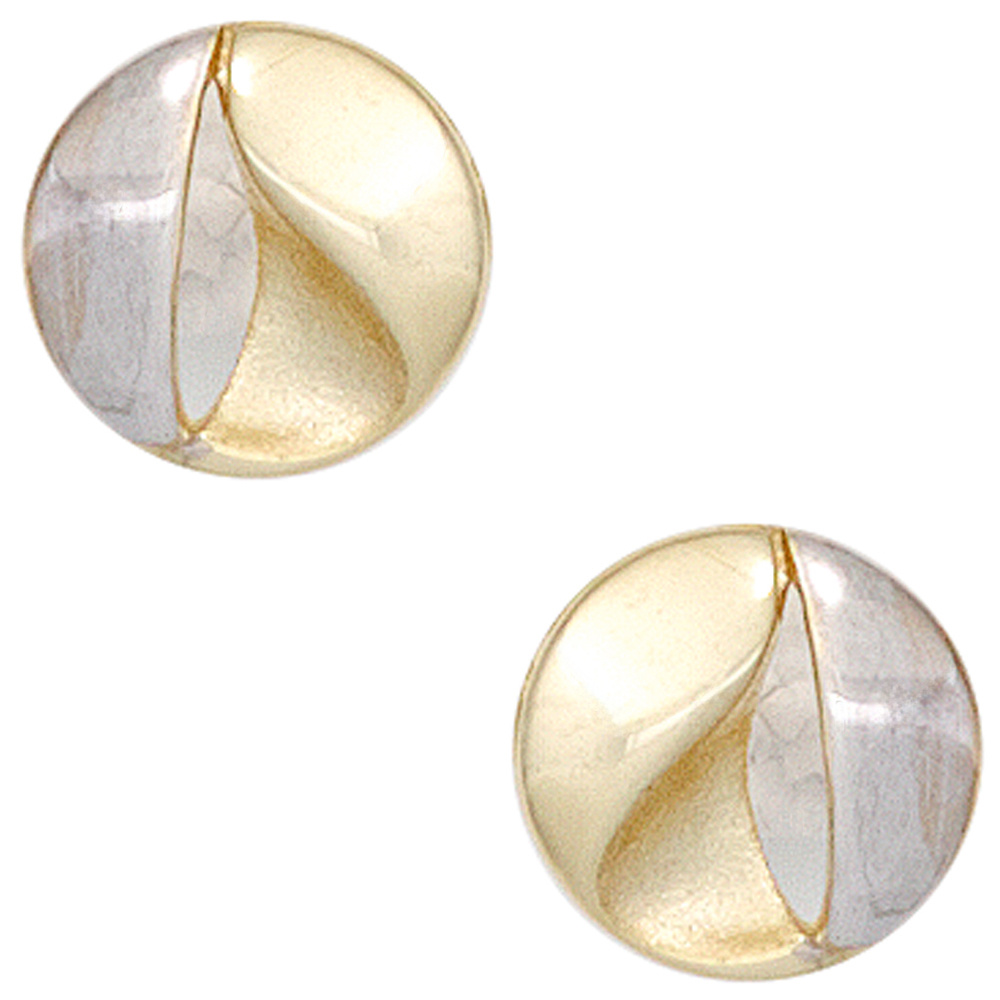 Ohrstecker rund 333 Gold Gelbgold bicolor mattiert Ohrringe Goldohrstecker