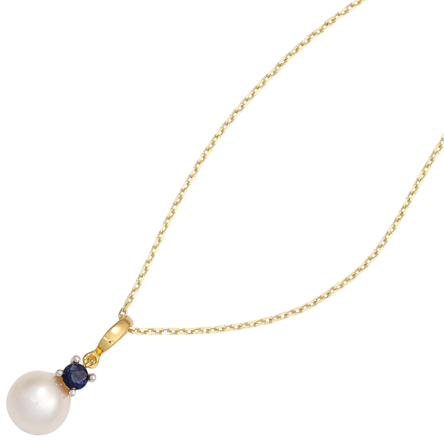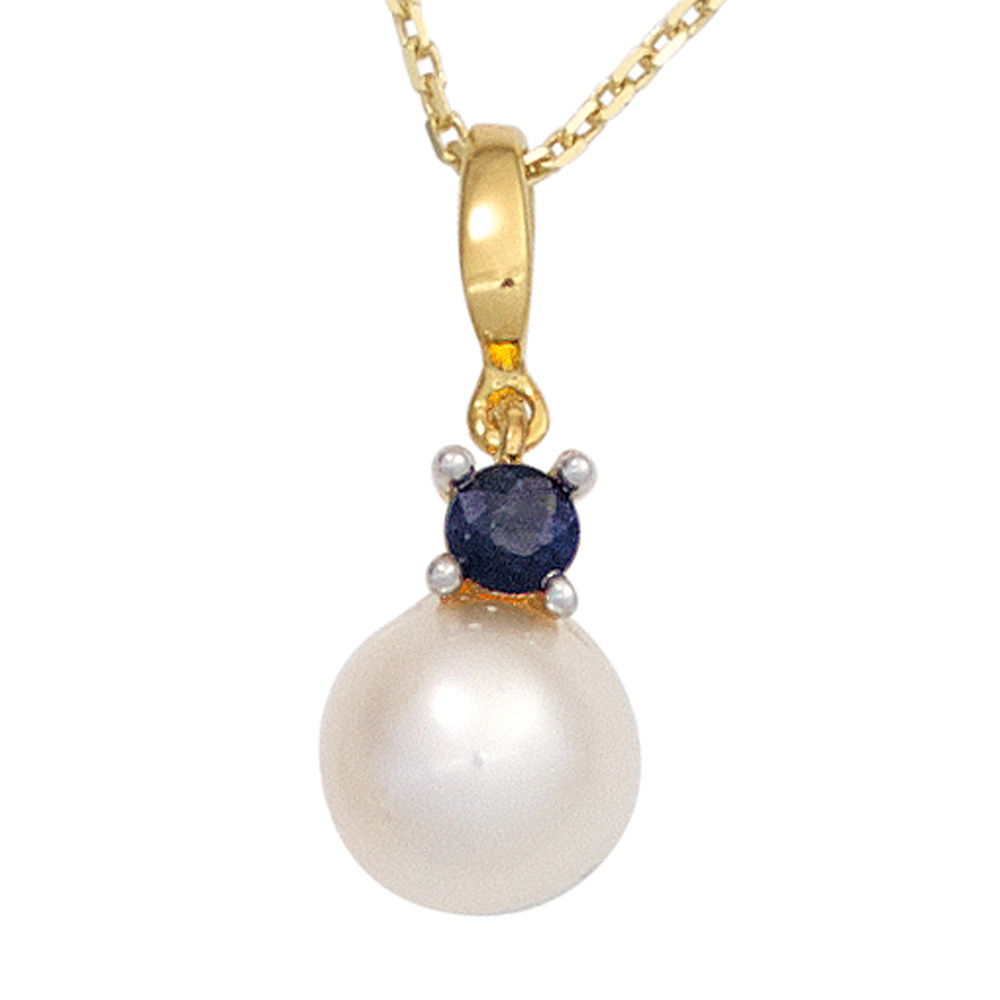 Anhänger 585 Gold Gelbgold Weißgold 1 Süßwasser Perle 1 Saphir Perlenanhänger Anhänger 585 Gold Gelbgold Weißgold 1 Süßwasser Perle 1 Saphir Perlenanhänger