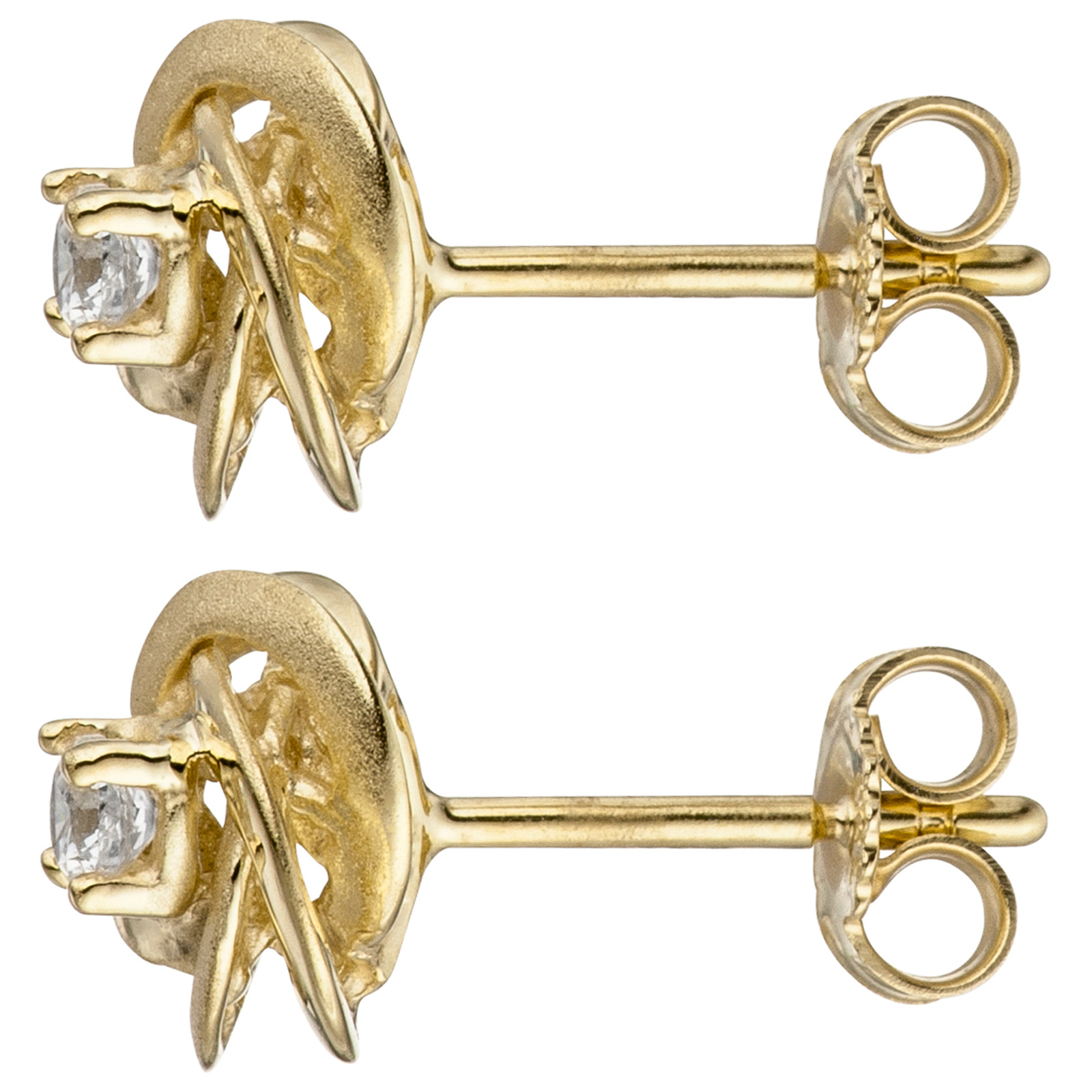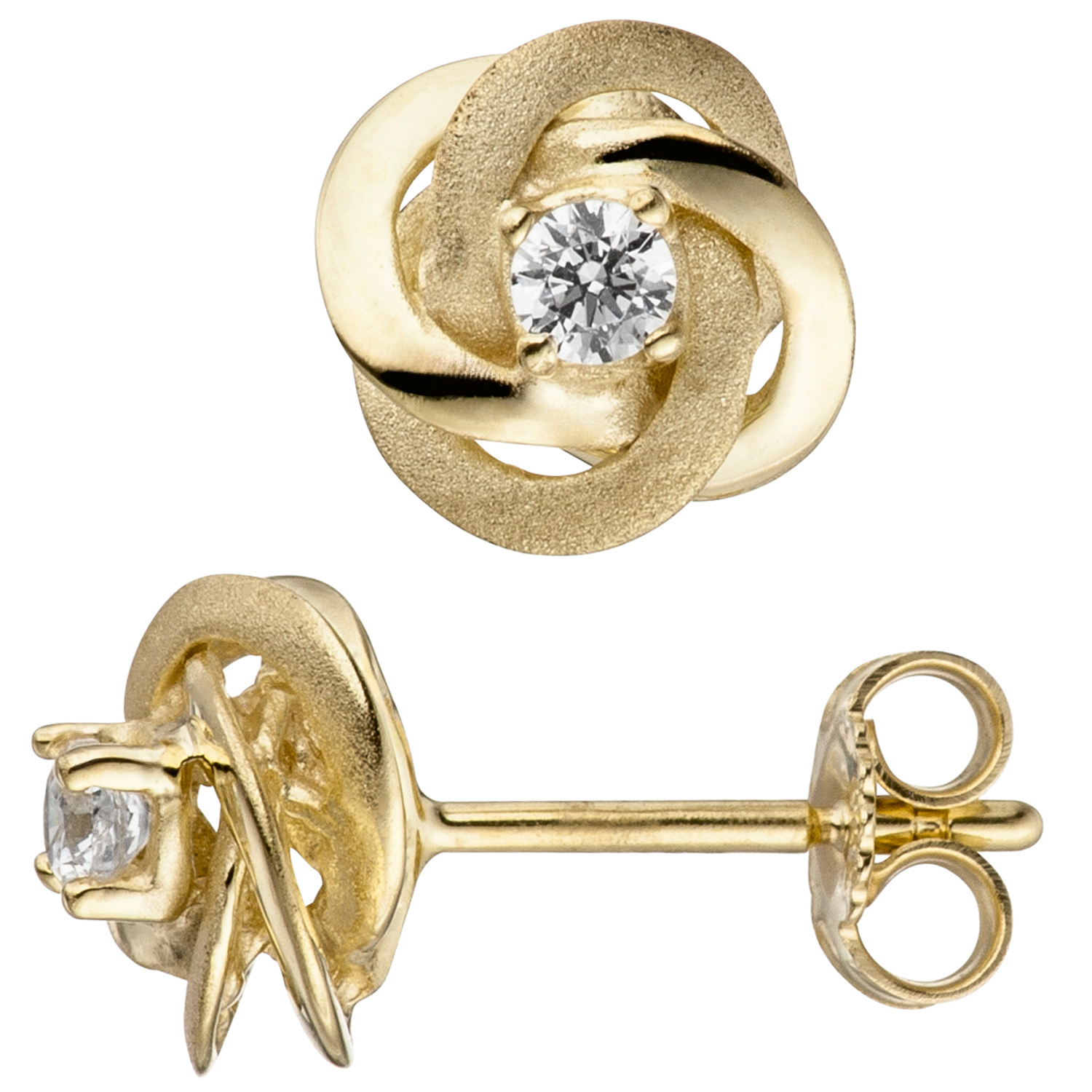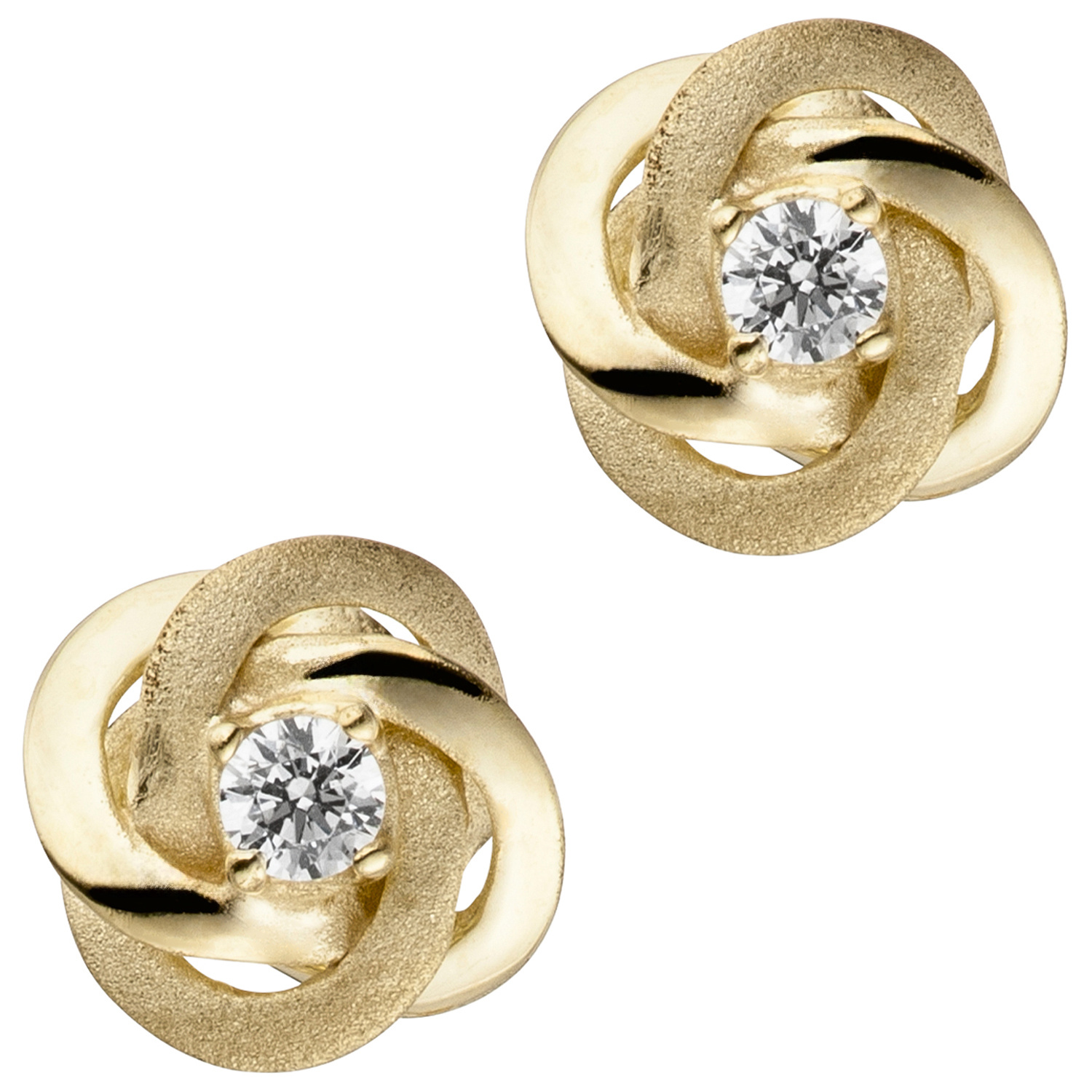 Ohrstecker verschlungen 333 Gold Gelbgold teil matt 2 Zirkonia Ohrringe