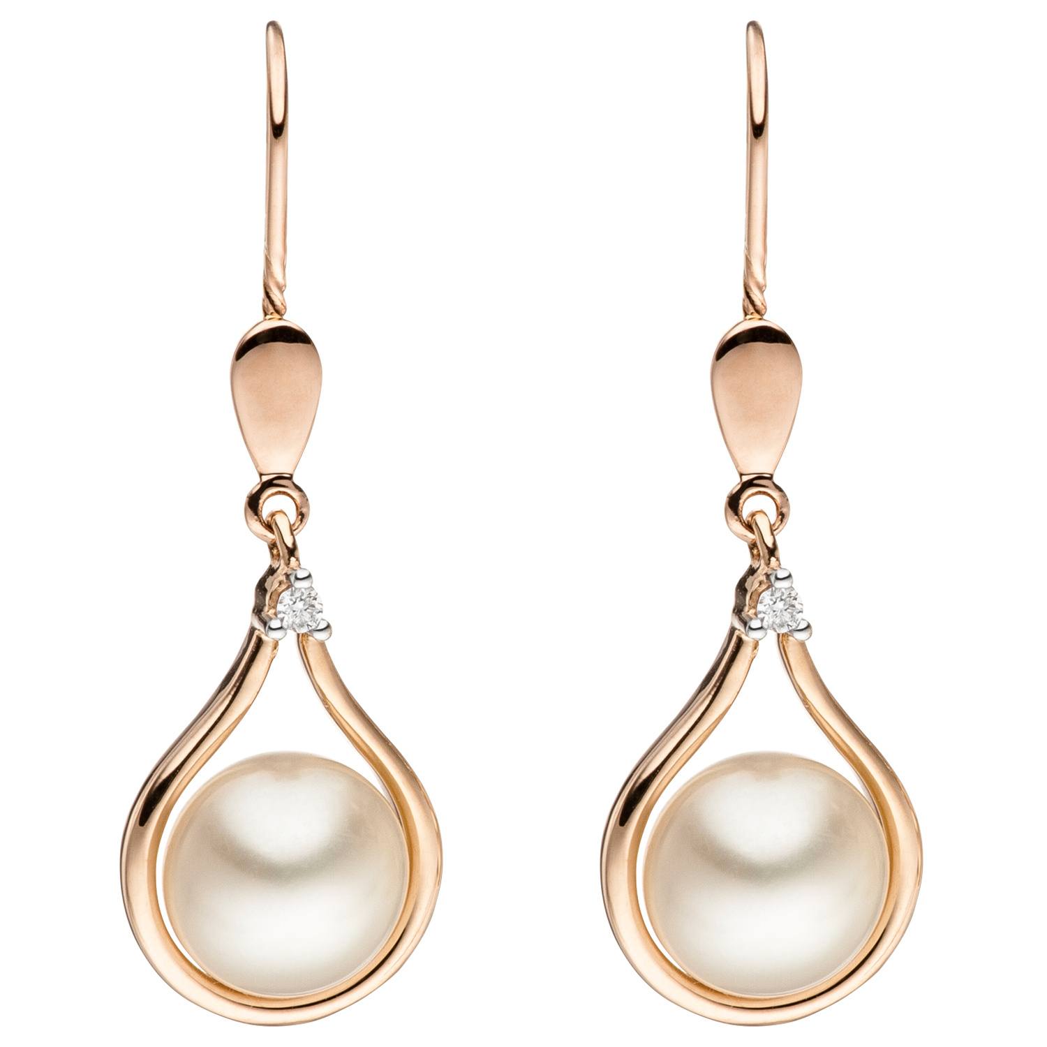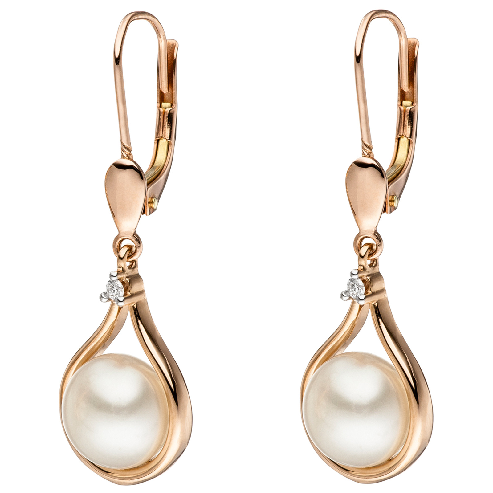 Ohrhänger 585 Rotgold 2 Süßwasser Perlen 2 Diamanten Brillanten Ohrringe