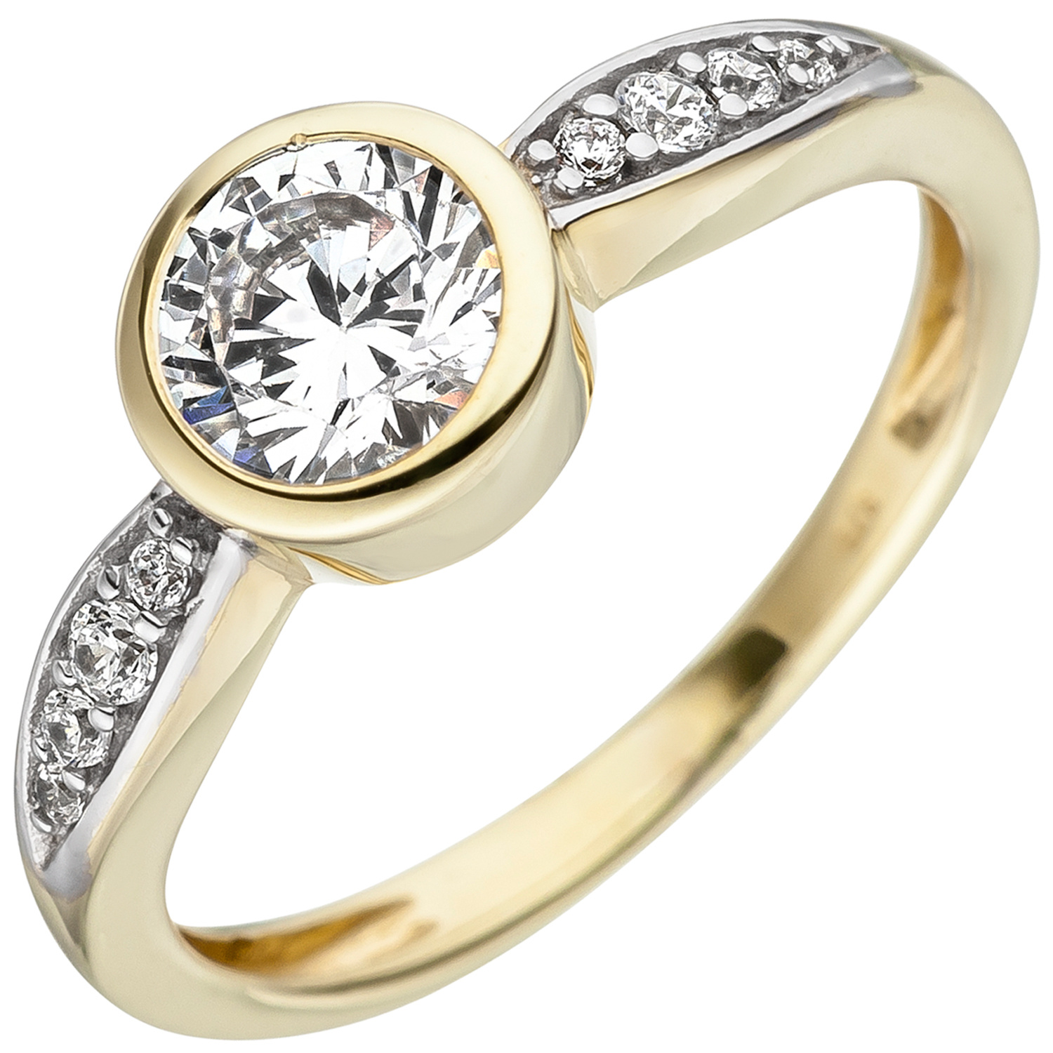 Damen Ring 375 Gold Gelbgold bicolor 9 Zirkonia Goldring