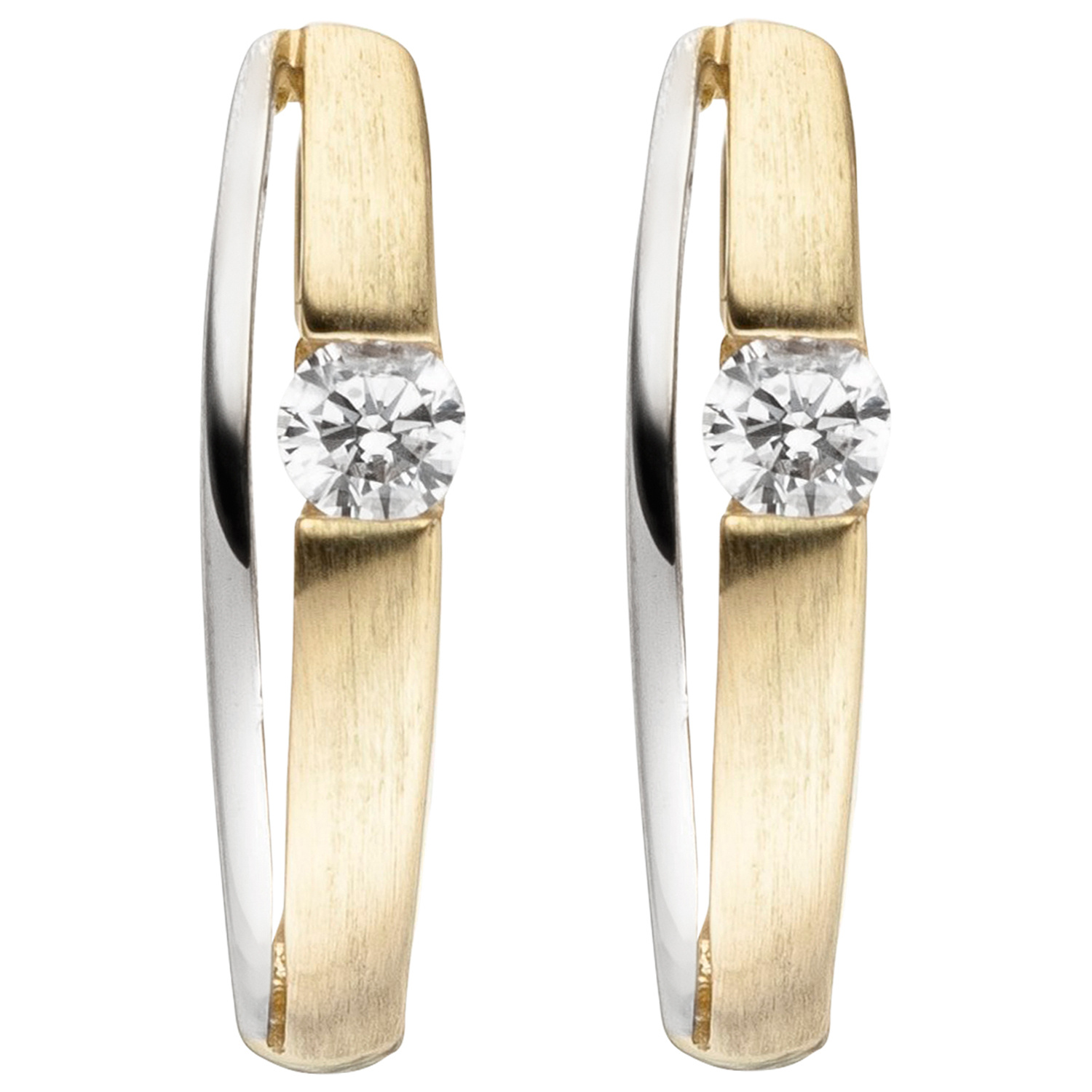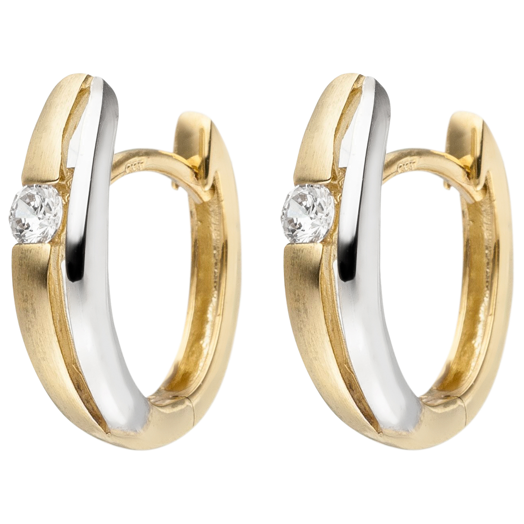 Creolen 333 Gold Gelbgold bicolor teil matt 2 Zirkonia Ohrringe