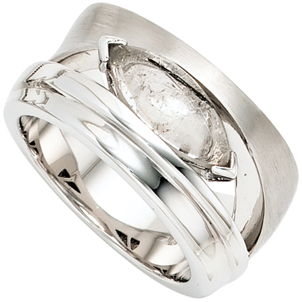 Damen Ring breit 925 Sterling Silber rhodiniert teil matt 1 Turmalinquarz