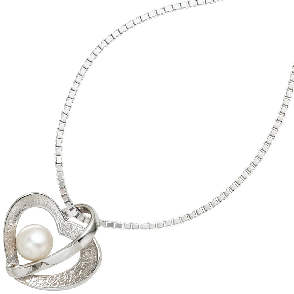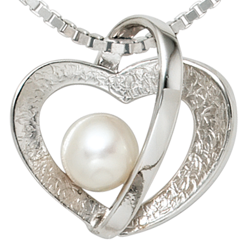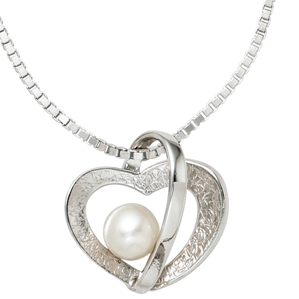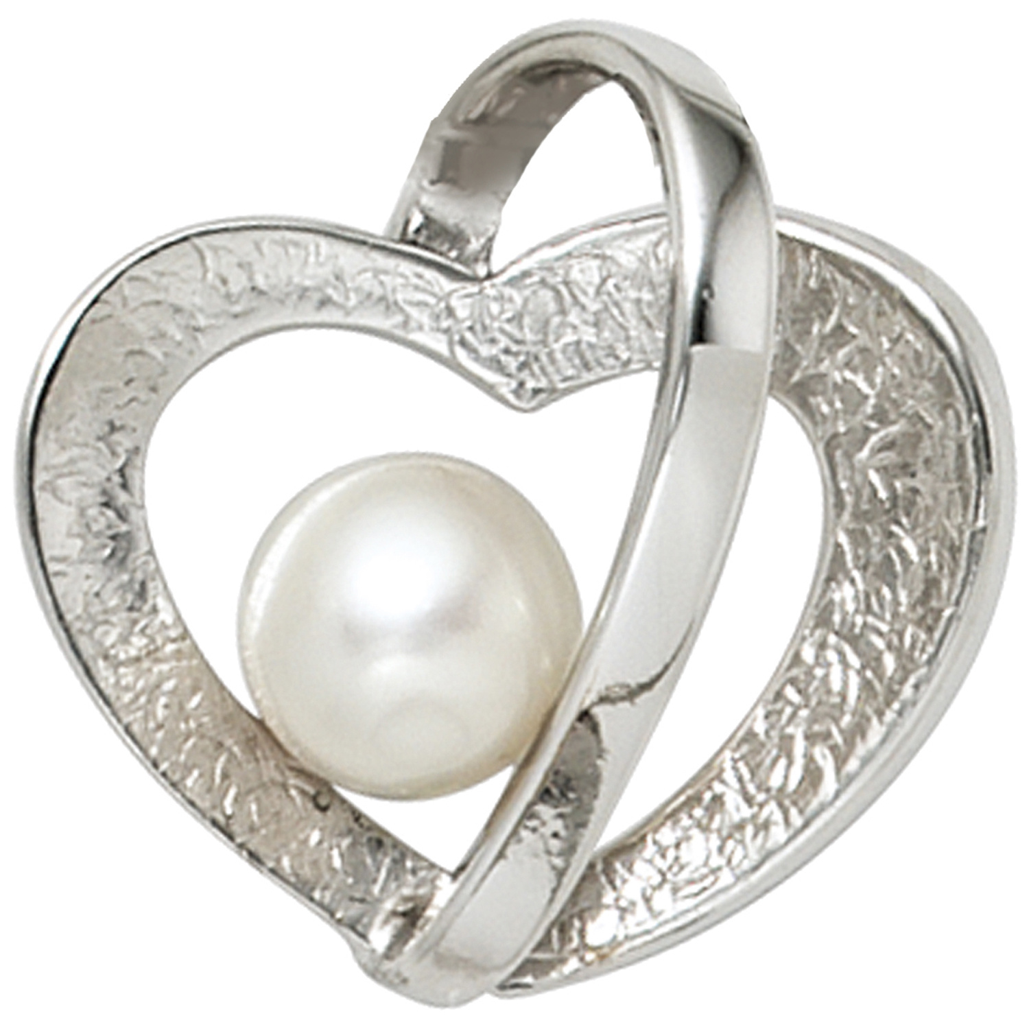 Anhänger Herz 925 Sterling Silber eismatt 1 Süßwasser Perle Perlenanhänger