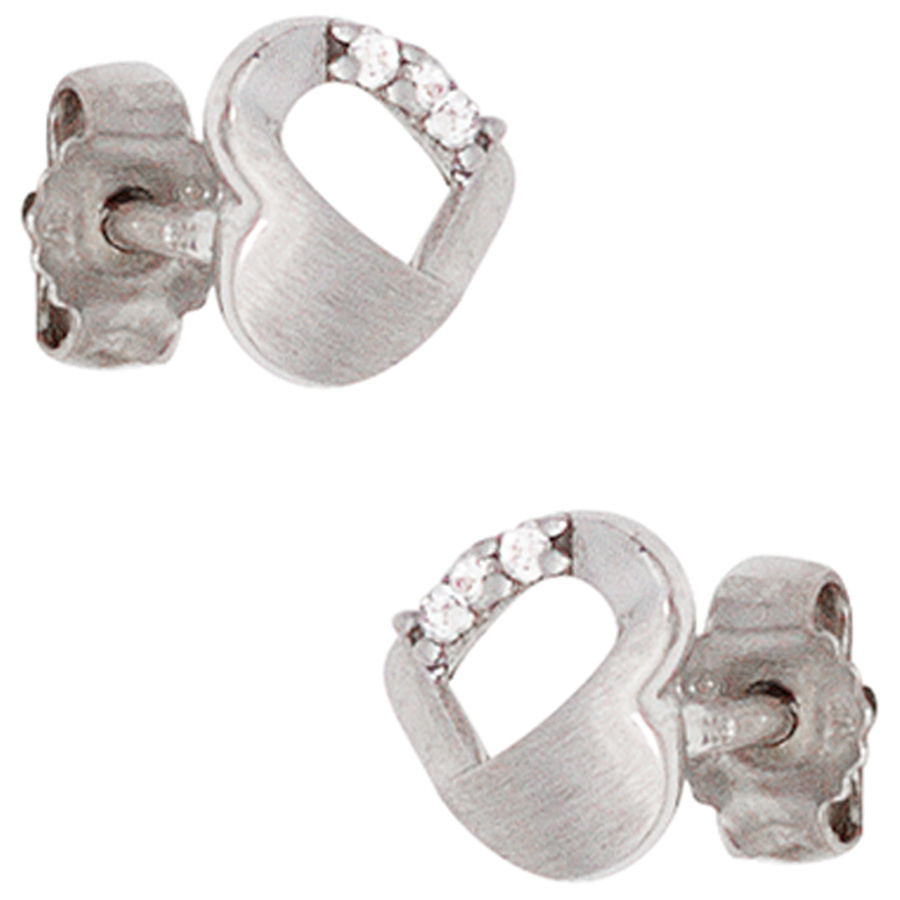 Ohrstecker Herz Herzen 925 Sterling Silber mattiert 6 Zirkonia Ohrringe