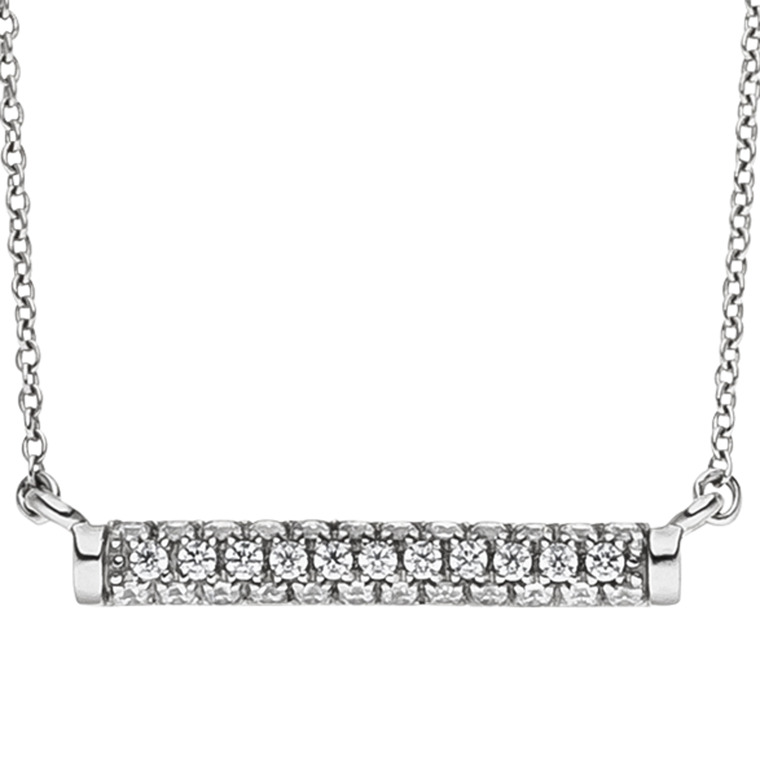 Collier / Halskette aus 925 Sterlingsilber, rhodiniert, mit 35 Zirkonia und Karabinerverschluss, Länge ca. 45 cm, auf 42 cm verkürzbar, Kettenstärke ca. 0,8 mm x 0,8 mm, Höhe ca. 2,5 mm, Breite ca. 17,8 mm, Tiefe ca. 1,9 mm, Gewicht ca. 1,8 g * Der Artikel ist anlaufgeschützt (rhodiniert) * Bitte beachten Sie die Maße! Auf dem Foto kann der Artikel größer wirken *