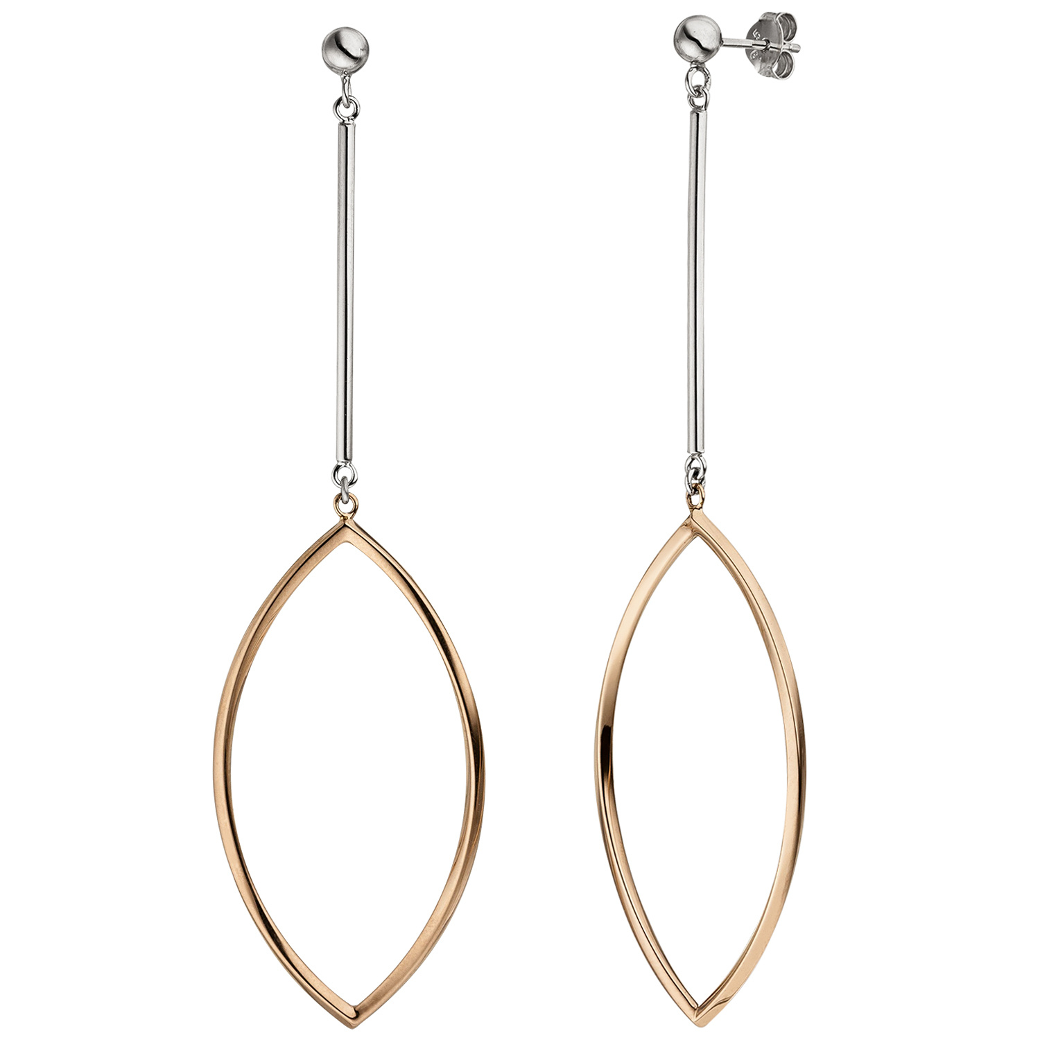 Ohrhänger lang 925 Silber bicolor vergoldet Ohrringe Ohrstecker