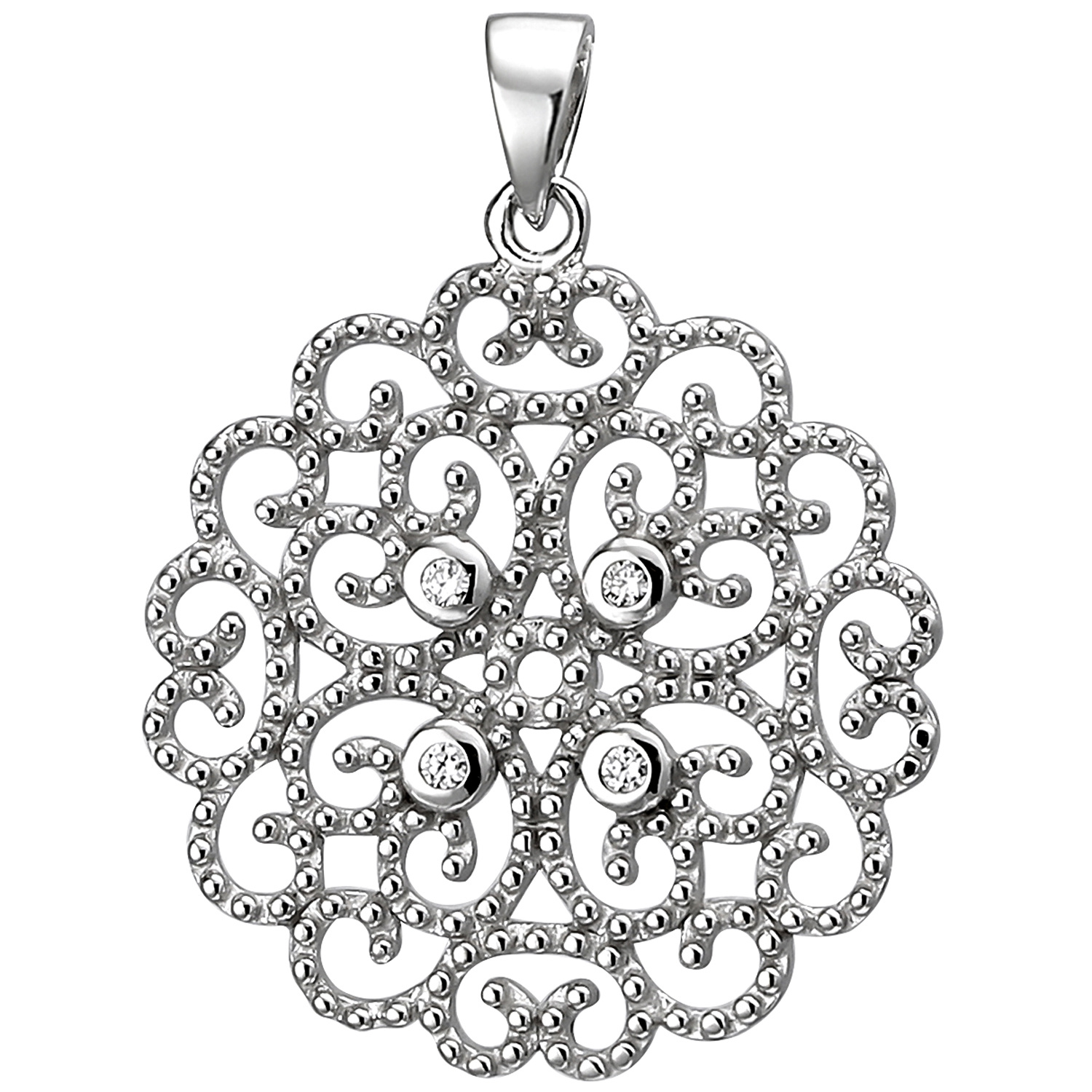 Anhänger aus 925 Sterlingsilber, rhodiniert, mit 4 Zirkonia, Höhe ca. 23,1 mm, Breite ca. 20,6 mm, Tiefe ca. 1,4 mm, Innenmaße der Öse ca. 3,1 mm x 2,6 mm, Gewicht ca. 1,7 g * Der Artikel ist anlaufgeschützt (rhodiniert) * Bitte beachten Sie die Maße! Auf dem Foto kann der Artikel größer wirken *