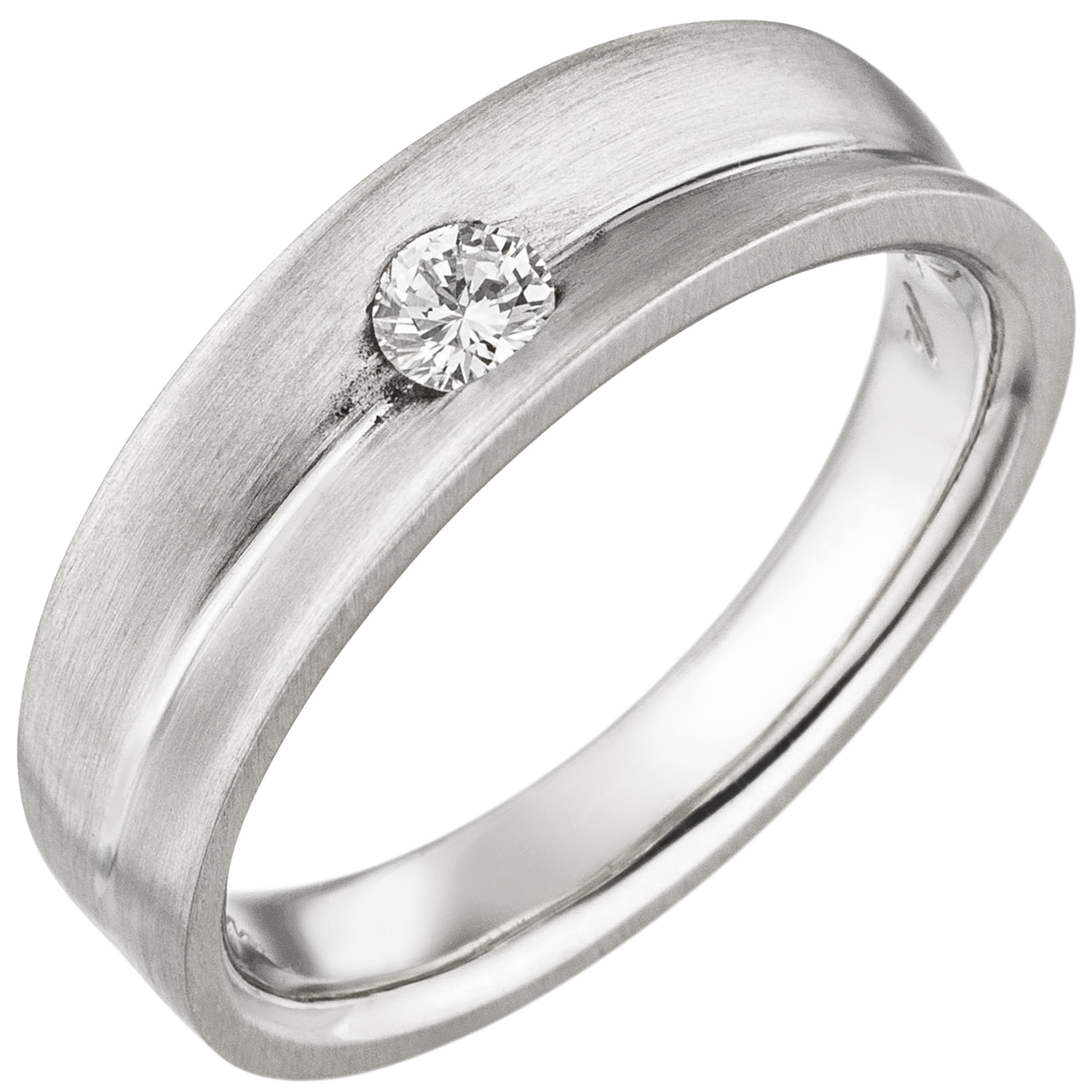Damenring aus 950 Platin, teilmattiert, mit einem Diamant-Brillanten, 0,13 ct., W/SI wesselton (weiß), SI=(kleine, mit bloßem Auge nicht erkennbare natürliche Einschlüsse), Feinbearbeitung gut, Breite ca. 5,7 mm, Tiefe ca. 2,9 mm, Gewicht ca. 8,7 g * Bitte beachten Sie die Maße! Auf dem Foto kann der Artikel größer wirken *