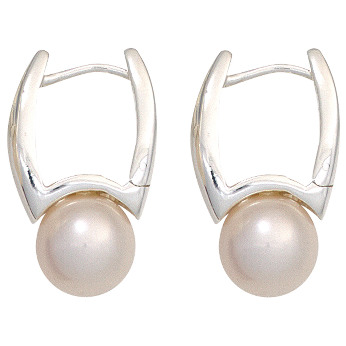 Creolen 925 Silber 2 Süßwasser Perlen Ohrringe Perlenohrringe