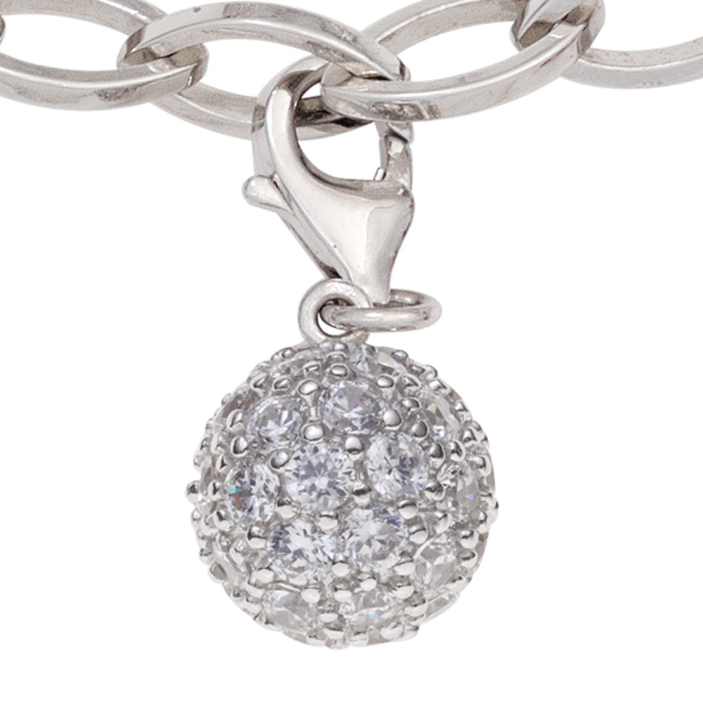 Einhänger Charm Kugel 925 Sterling Silber rhodiniert mit Zirkonia