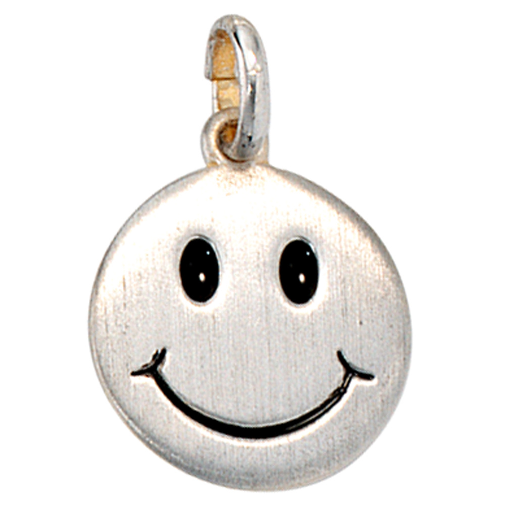 Kinder-Anhänger "Gesicht" aus 925 Sterlingsilber, rhodiniert und mattiert, mit schwarzer Lackeinlage, Durchmesser ca. 12,1 mm, Tiefe ca. 0,7 mm, Innenmaße der Öse ca. 4,2 mm x 2,4 mm, Gewicht ca. 0,9 g * Der Artikel ist anlaufgeschützt (rhodiniert) * Bitte beachten Sie die Maße! Auf dem Foto kann der Artikel größer wirken *