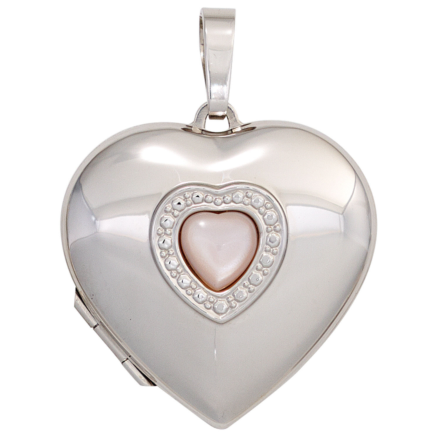 Medaillon Herz 925 Sterling Silber Perlmutt Einlage Anhänger zum Öffnen