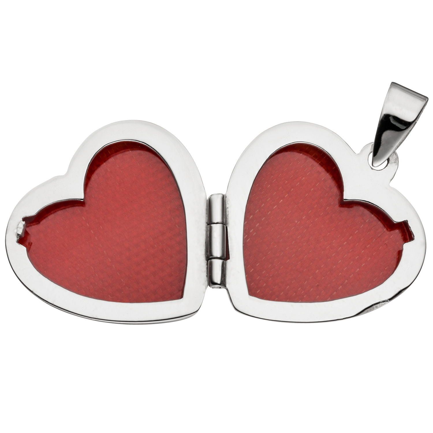 Medaillon "Herz/Marienkäfer" aus 925 Sterlingsilber, rhodiniert, mit rot-schwarzer Lackeinlage, für bis zu 2 Fotos, Höhe ca. 18,5 mm, Breite ca. 16,5 mm, Tiefe ca. 7,1 mm, Innenmaße der Öse ca. 5,2 mm x 2,7 mm, Gewicht ca. 3,0 g * Der Artikel ist anlaufgeschützt (rhodiniert) * Bitte beachten Sie die Maße! Auf dem Foto kann der Artikel größer wirken *