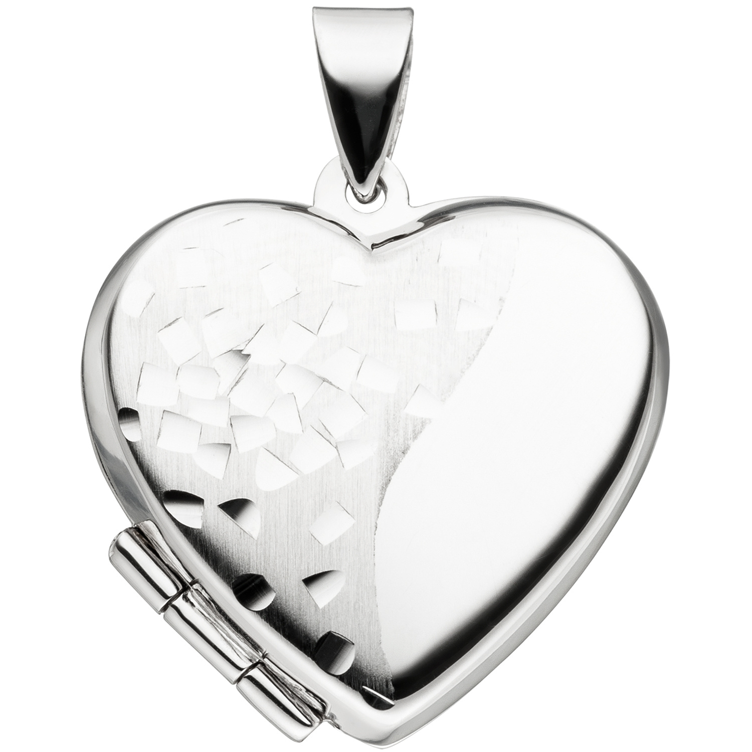 Medaillon Herz für 2 Fotos 925 Silber teil matt Herzmedaillon zum Öffnen Medaillon Herz für 2 Fotos 925 Silber teil matt Herzmedaillon zum Öffnen