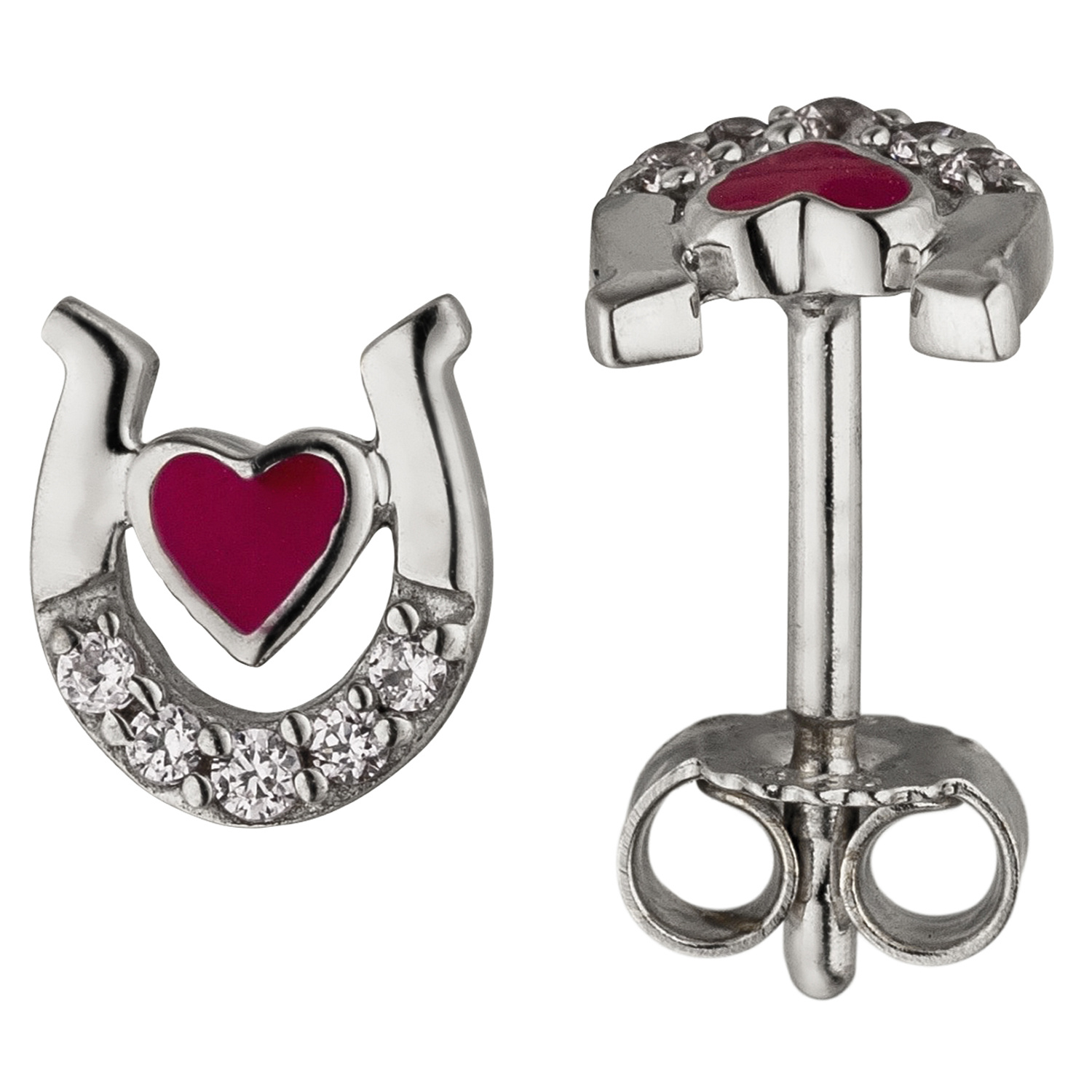 Kinder Ohrstecker Hufeisen Herz pink 925 Silber 10 Zirkonia Kinderohrringe