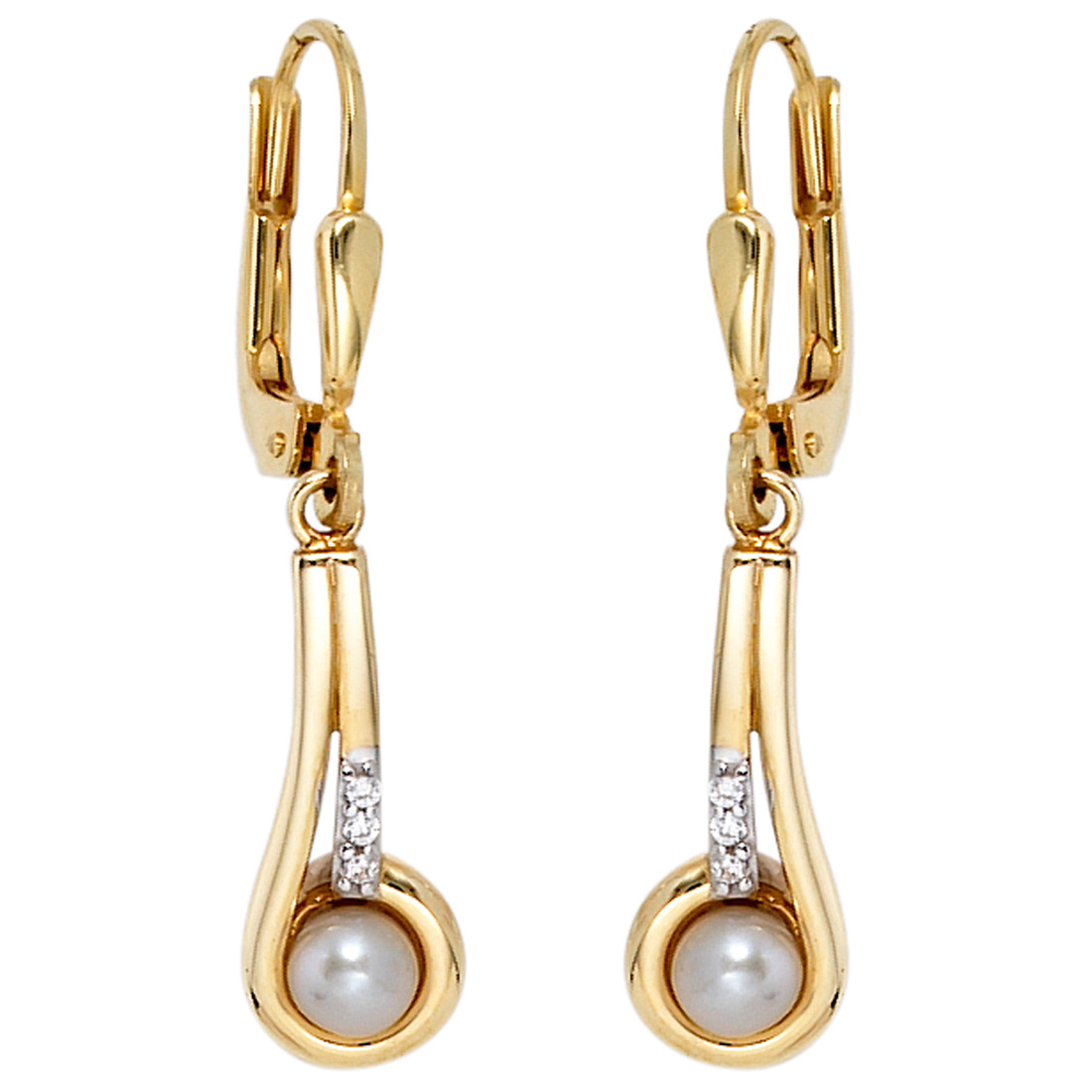Boutons 333 Gold Gelbgold 2 Süßwasser Perlen 6 Zirkonia Ohrringe Ohrhänger