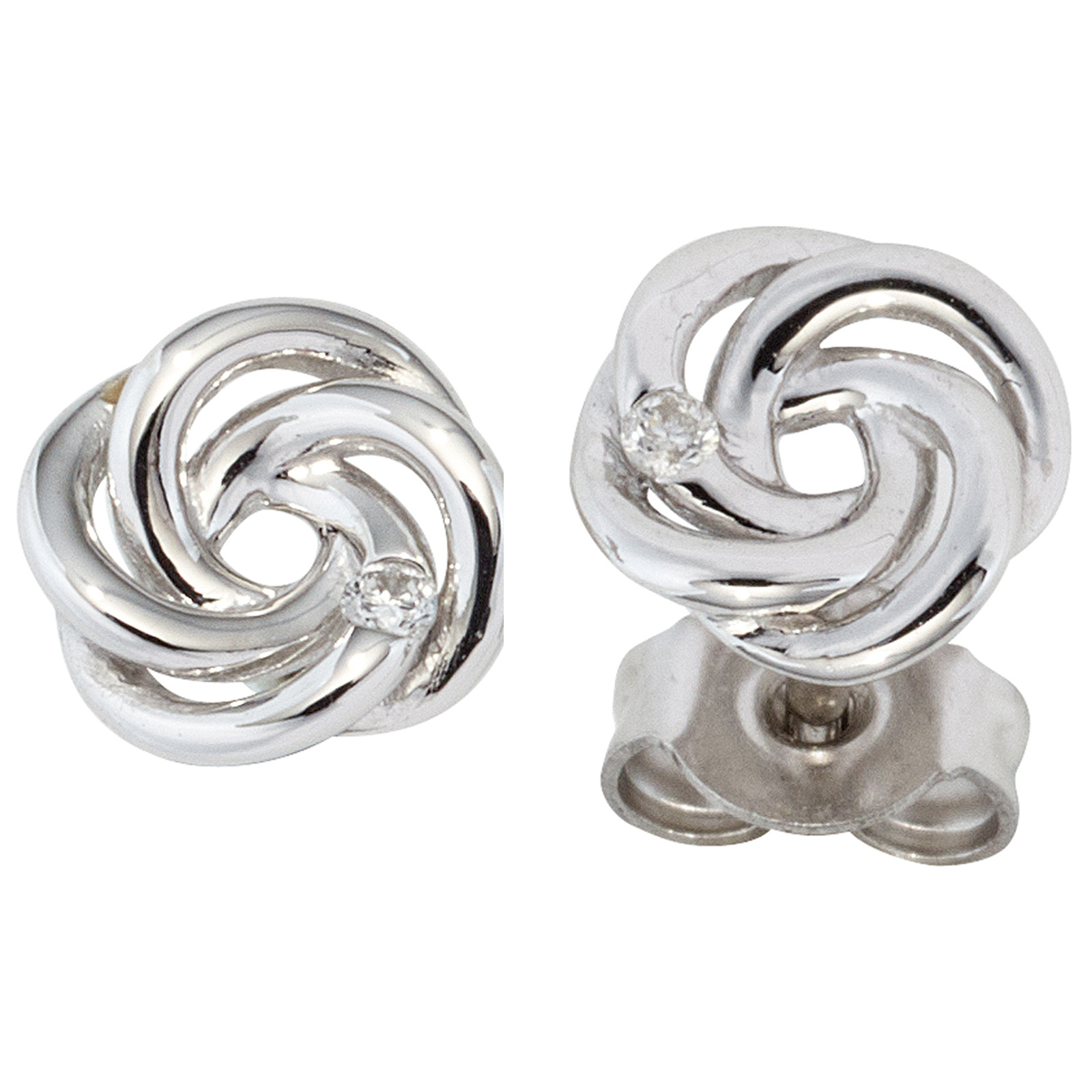 Ohrstecker verschlungen 585 Gold Weißgold 2 Diamanten Brillanten Ohrringe