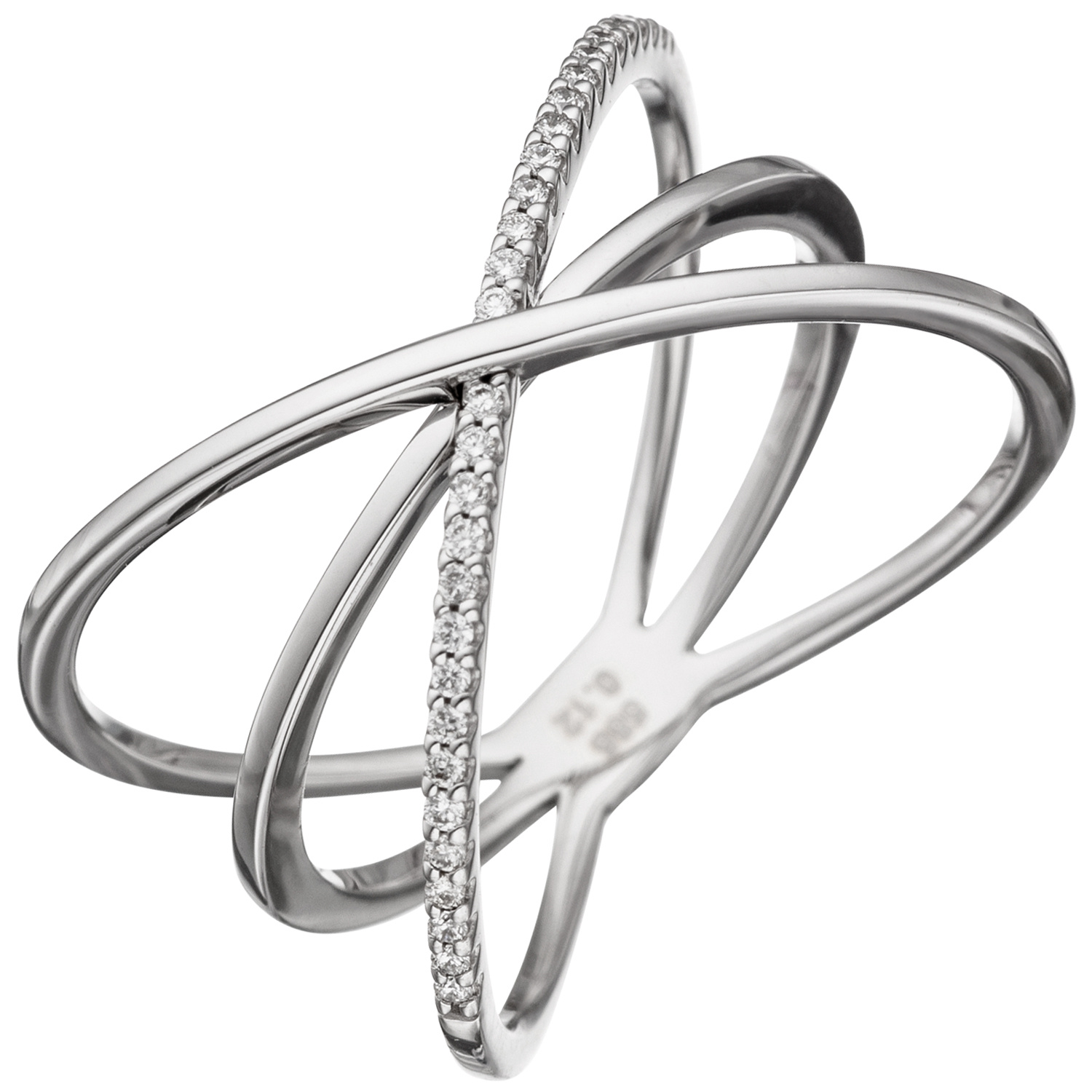 Damen Ring 3-reihig 585 Gold Weißgold 30 Diamanten Brillanten Weißgoldring