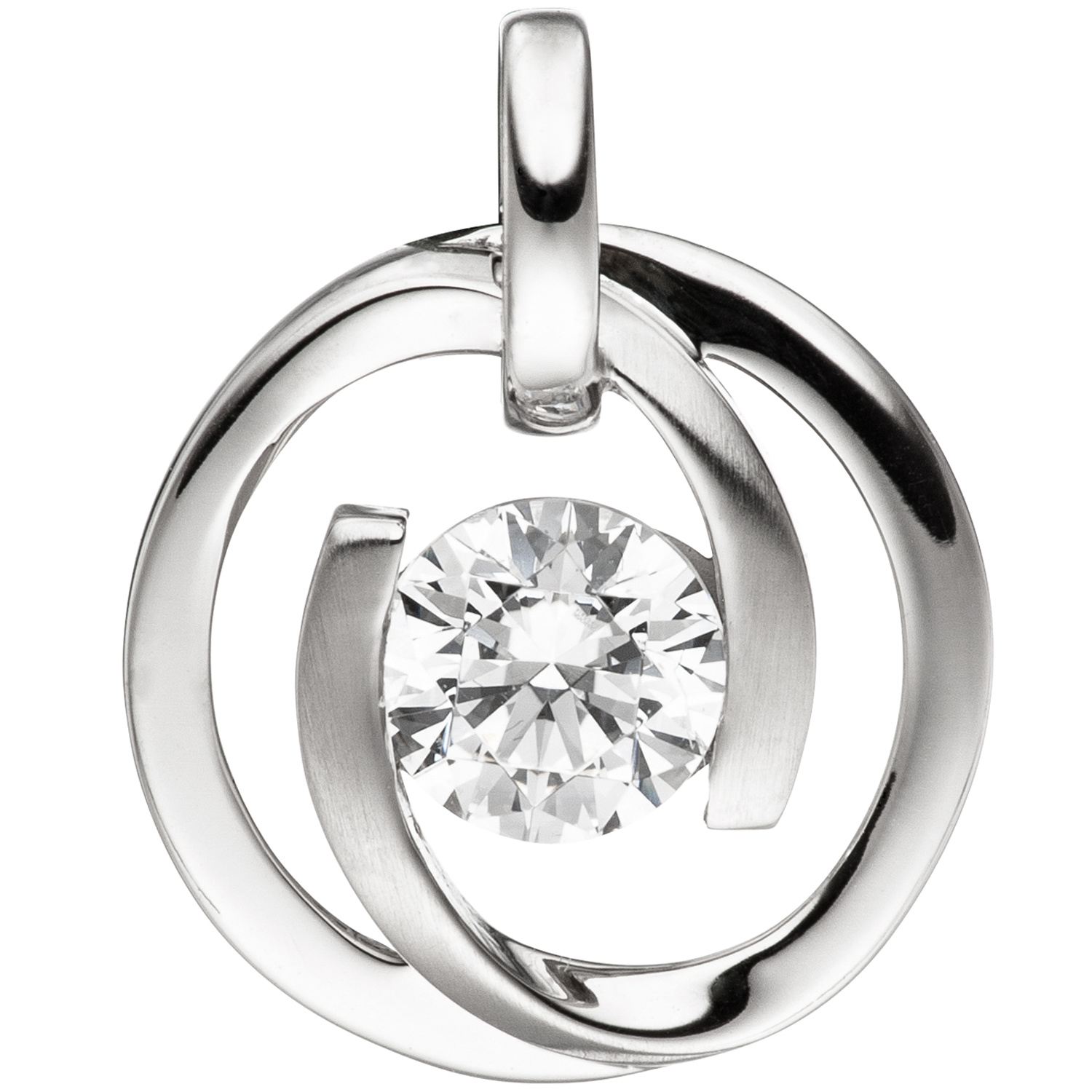 Anhänger 333 Gold Weißgold teil matt 1 Zirkonia Weißgoldanhänger