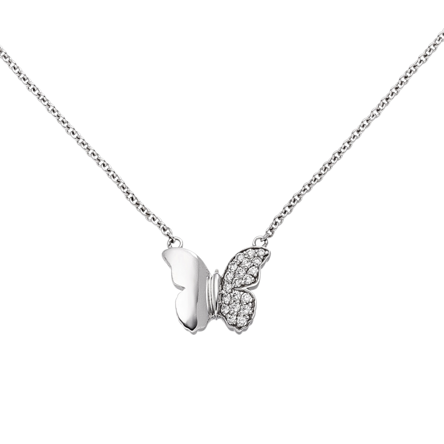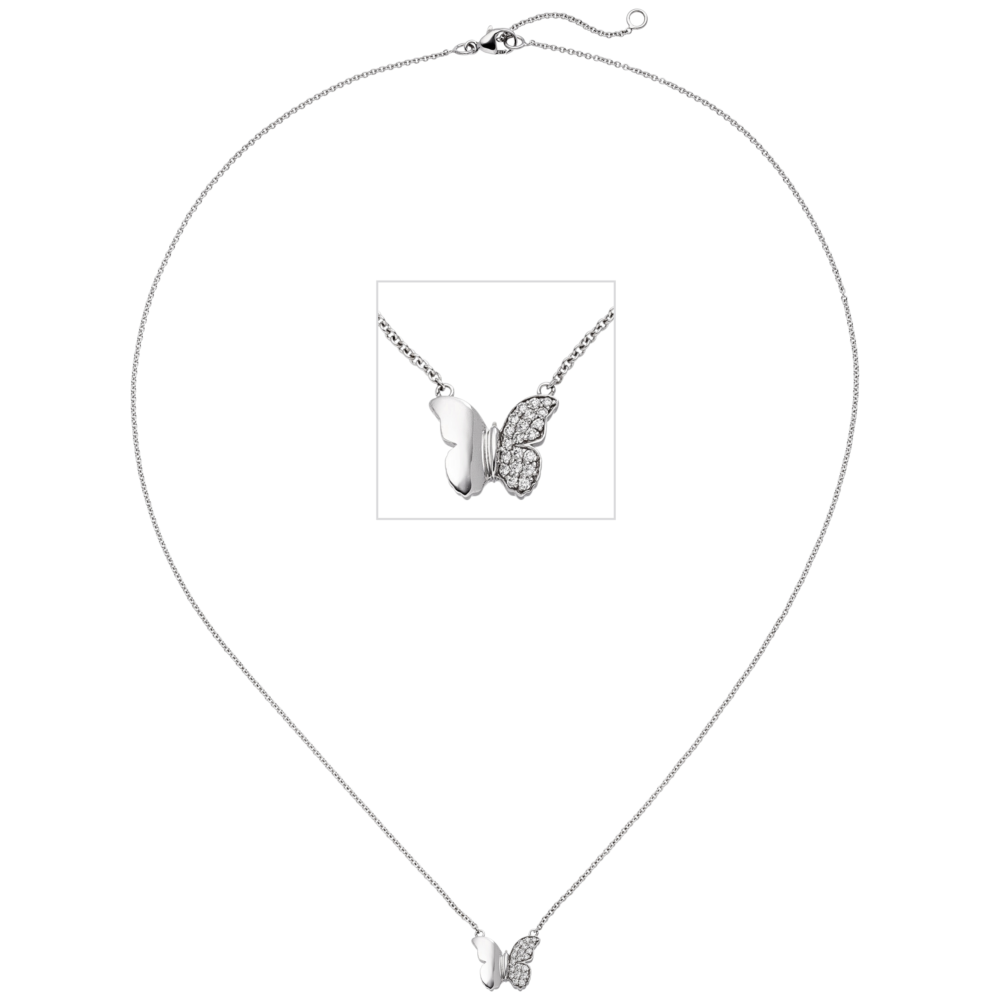 Collier Halskette Schmetterling 585 Weißgold 20 Diamanten Brillanten 45 cm Kette