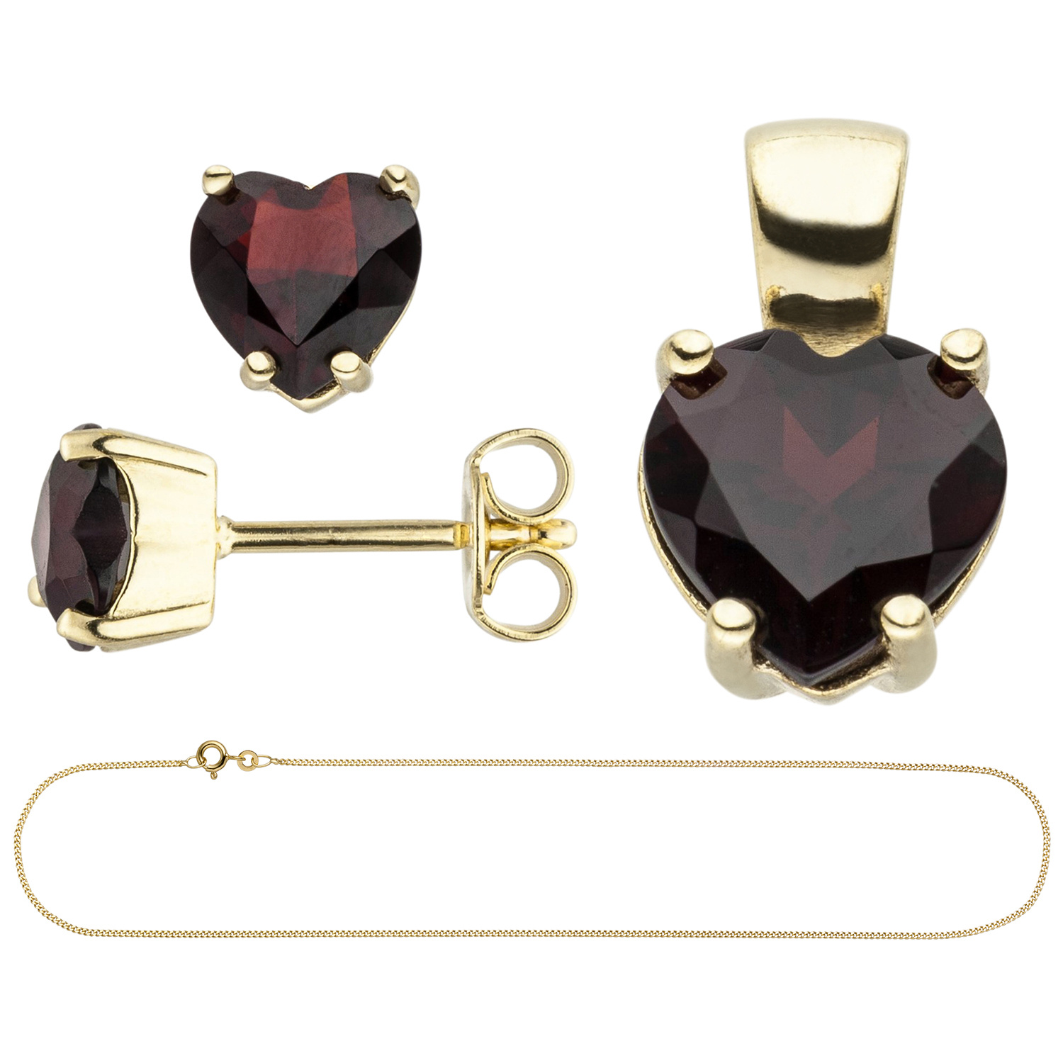 Schmuck-Set 333 Gold Gelbgold Granat-Herzen mit Kette 45 cm Schmuck-Set 333 Gold Gelbgold Granat-Herzen mit Kette 45 cm Schmuck-Set 333 Gold Gelbgold Granat-Herzen mit Kette 45 cm Schmuck-Set 333 Gold Gelbgold Granat-Herzen mit Kette 45 cm